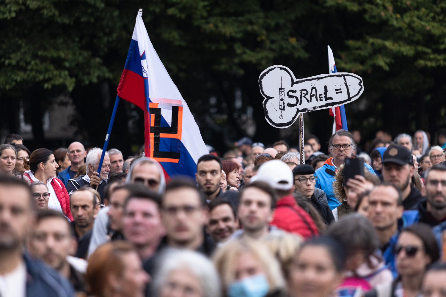 Na ljubljanskem Trgu republike pred parlamentarnim poslopjem so se danes vnovič zbrali nasprotniki uvajanja pogojev PCT (preboleli, cepljeni, testirani) v vse sfere življenja. Tudi tokrat so bile v ospredju zahteve po umiku omejevalnih ukrepov in nasprotovanje oblastem, ki so po mnenju nekaterih govorcev ugrabile državo. Slišati je bilo tudi nekaj tistih, ki ne verjamejo, da novi koronavirus sploh obstaja, pa tudi tistih, ki verjamejo v škodljivost cepiv.