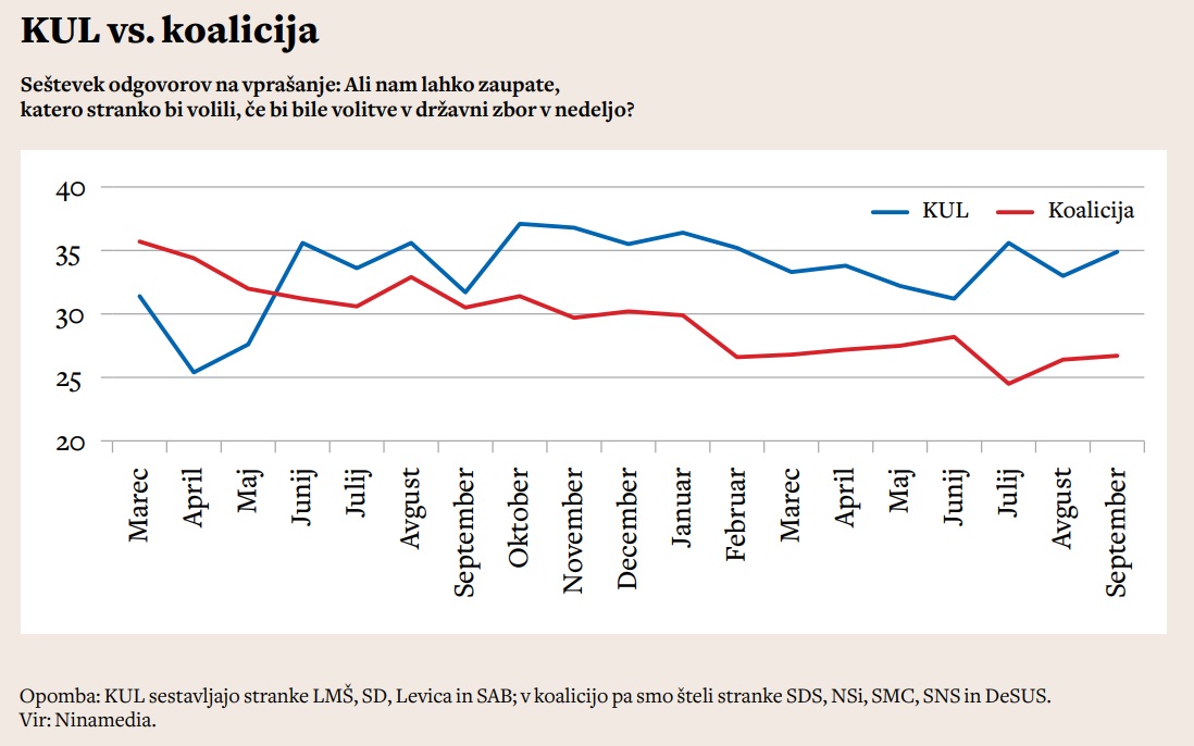 Nikola Damjanić, direktor Ninamedie, recimo pravi, da na desni strani ni videti realne možnosti za novo stranko. »Nekatera imena sicer krožijo, a nimajo izvolitvenega potenciala, veliko več možnosti je na levici. Če bi denimo Aleksander Čeferin ustanovil svojo stranko, bi lahko k sebi potegnil polovico volivcev levih strank. Za zdaj sicer kakih resnih igralcev na levici ni, edini, ki si je ustvaril ime, je predsednik parlamenta Igor Zorčič. Na desni pa so glasovi bolj ali manj zabetonirani,« odgovarja. Podobno na podlagi raziskav ugotavljajo v Mediani, njena direktorica Janja Božič Marolt pravi, da je največ volivcev novim strankam naklonjenih seveda med neopredeljenimi – okoli 40 odstotkov –, na desnici jih je le kakšnih 20 odstotkov. »Med levo opredeljenimi volivci jih je tako imenovanim novim obrazom naklonjenih okoli 33 odstotkov, kažejo podrobnejše analize naših anket,« pojasnjuje. V tem smislu je predvolilno združevanje koalicije KUL seveda med drugim posledica tega, da so levi volivci bodisi veliko bolj kritični ali razočarani, koalicija KUL je tako tudi koalicija proti pojavljanju novih obrazov.