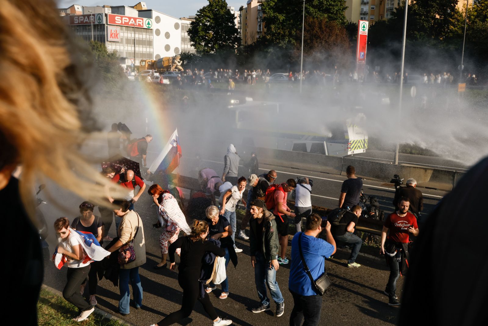 Policija je nad protestniki na ljubljanski obvoznici uporabila vodni top
