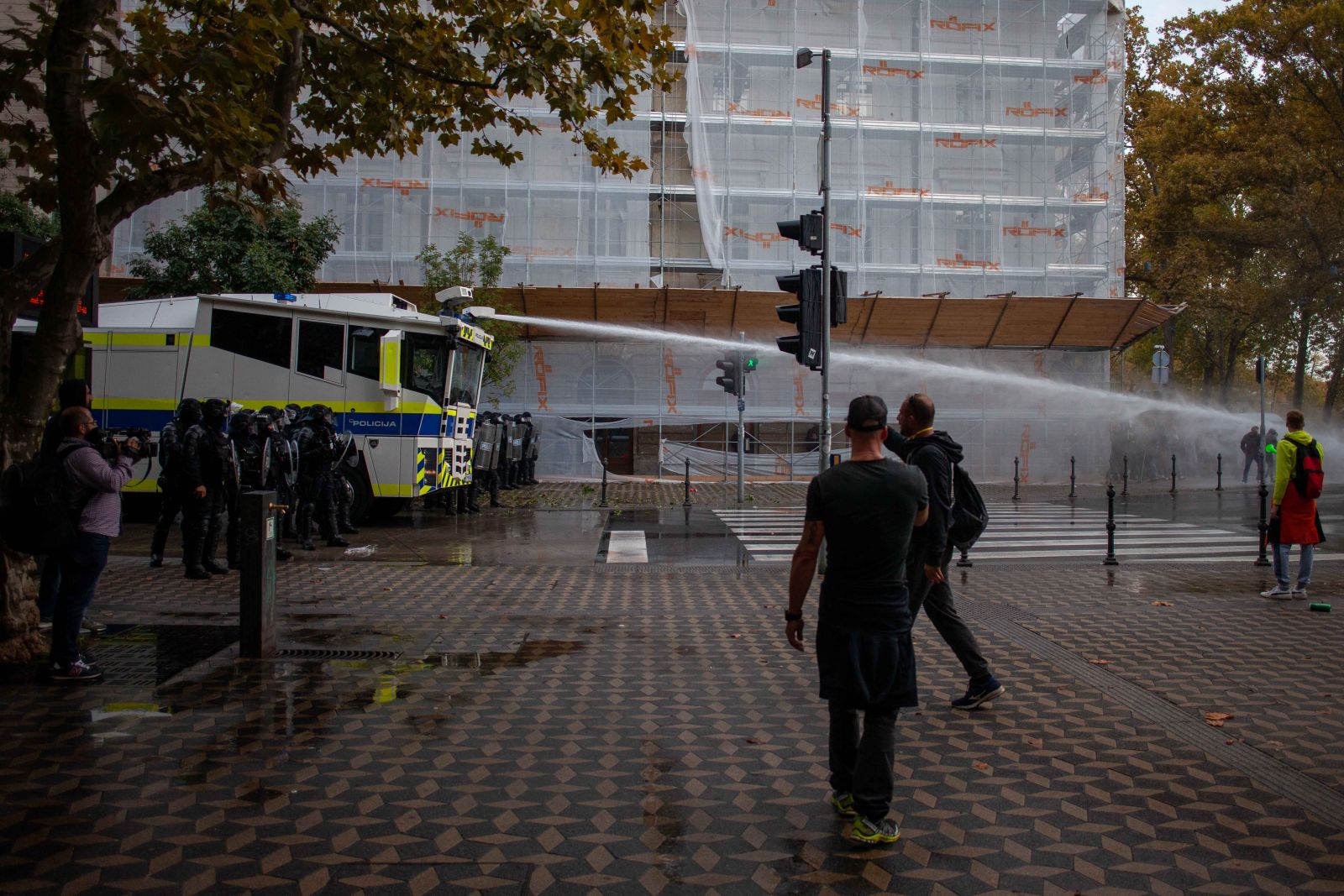 Policija je proti protestnikom okoli 17. ure uporabila vodni top in solzivec, v zraku je dogajanje nadzoroval policijski helikopter.