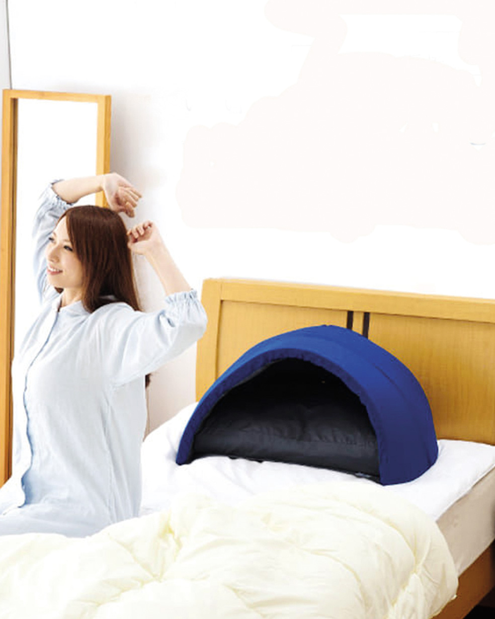Dober spanec je pol zdravja, vsekakor pa zelo pripomore h kakovosti življenja, česar se običajno zavemo takrat, ko nam spanec umanjka. Nekateri težko zaspijo, če okoliščine niso deviško popolne, brez zvokov, svetlobe ali drugih motečih dražljajev – prav njim je namenjen japonski igloo dome pillow, vzglavnik v obliki igluja oziroma kupole. »Če imate težave s spanjem, preizkusite iglu vzglavnik in izkusite spokojnost knjižnice,« pravijo ponudniki. Takšen spalni zapik sicer ni poceni, saj kupca olajša za dobrih sto petdeset evrov, a zna rešiti marsikateri odnos, ker je kot nalašč za tiste, ki si delijo posteljo, ne pa tudi mnenja glede idealnih okoliščin za spanje, in je to, kar je za enega pravšnje, drugemu presvetlo ali prehrupno. Iglu blazina je videti kot nekakšen šotor, v katerega vtaknemo glavo med spanjem. Čeprav navajajo, da vpije 99,9 odstotka svetlobe in kar okoli 126 odstotkov zvoka, ni znano, ali nas uspešno zaščiti pred partnerjevim smrčanjem. Kupolasto blazino lahko peremo v stroju, je razstavljiva in zložljiva, uporabljamo jo lahko v postelji in tudi na mizi ali celo na tleh.
