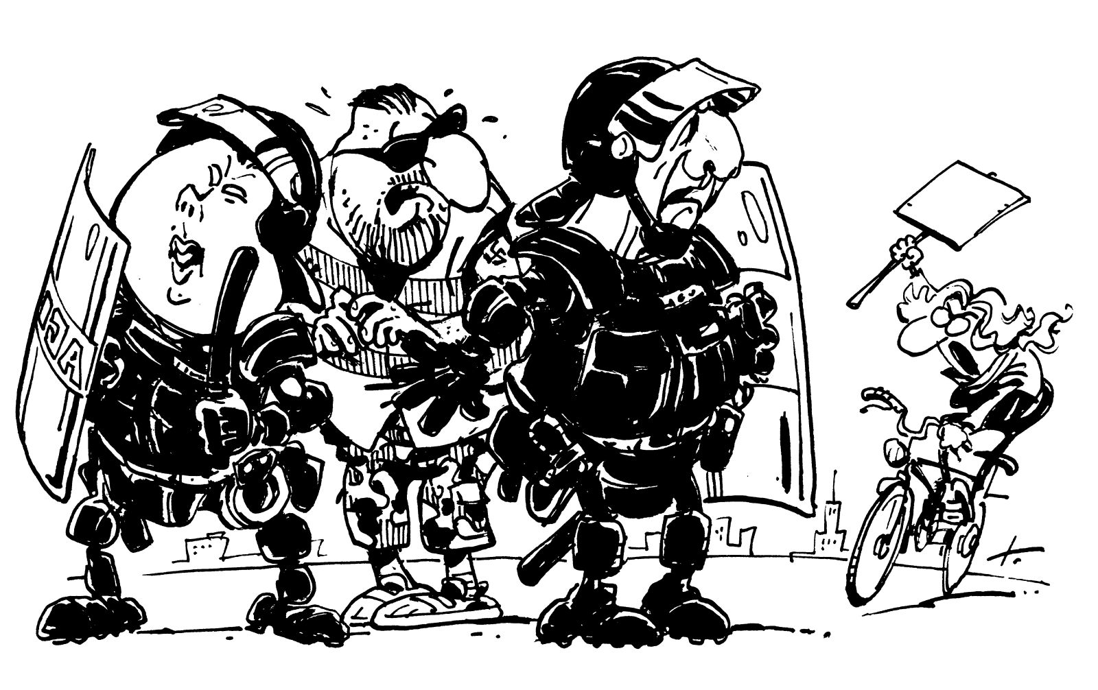 Vrhovni nadpolicaj O Lajaj je na željo policijskih množic SDS in Žana Mahniča - Pigyja sklenil, da bo končno zavaroval njihovo pravico do obrambe rumenih jopičev pred kolesarji. (levičarskim/diktatorskim sindikalistom pa bo dal nogo press)