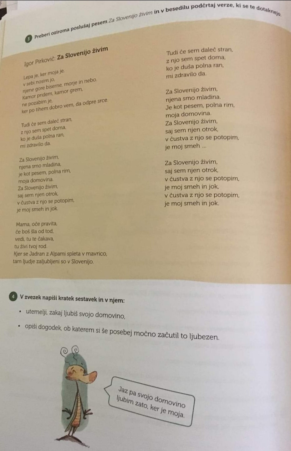 Domoljubje je vedno v modi, v nacionalistično obarvanih državah pa sploh. Nekateri uporabniki socialnih omrežij, med drugimi Marija Hobotnica, so po naključju ugotovili, da je ena od pesmi, dolgo časa je veljala za himno SDS, njen avtor pa je novinar Igor Pirkovič, uvrščena celo v delovni zvezek.