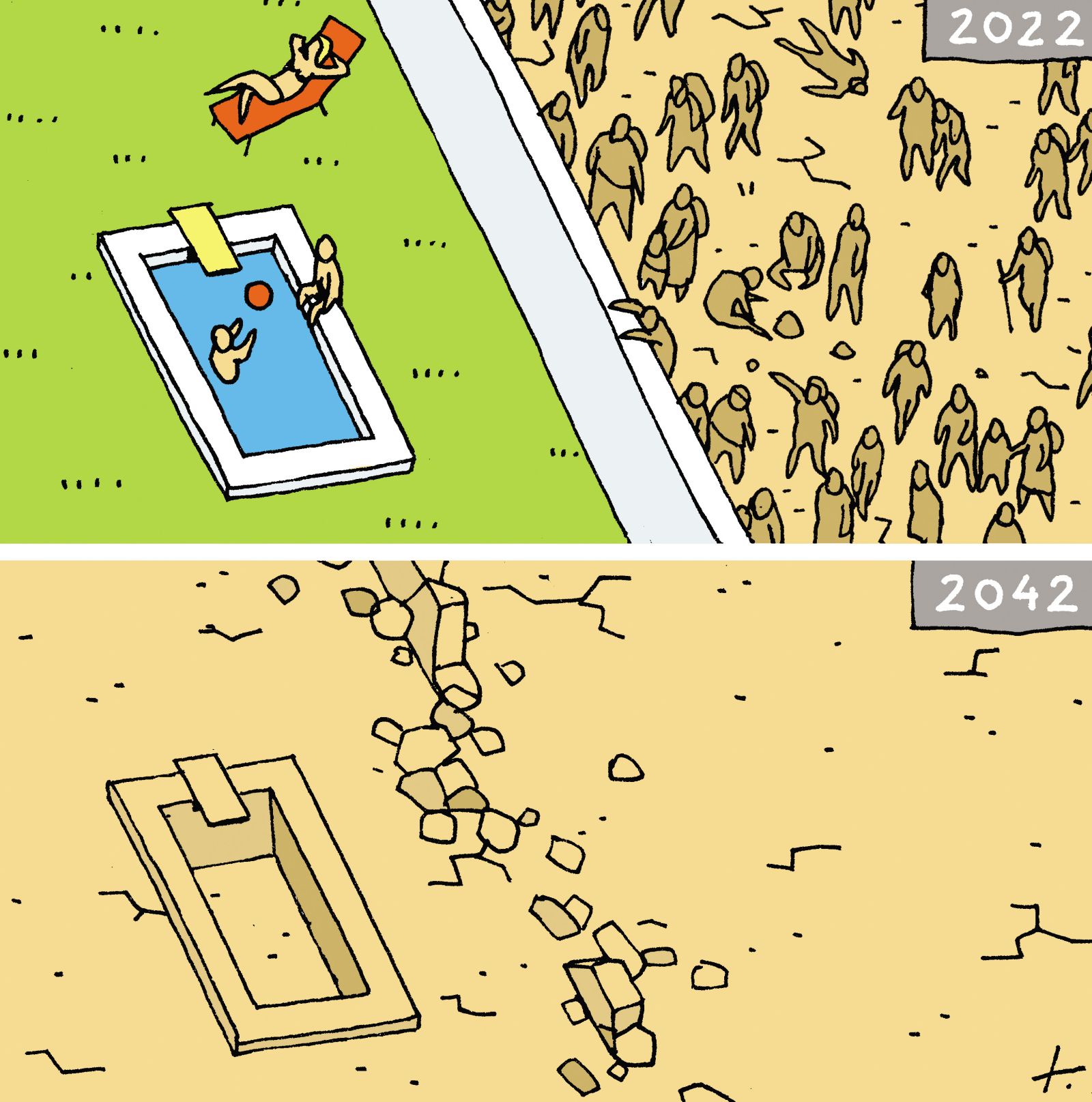 Tako smo se znašli v antropocenu, ponosno poimenovanem po človeku: nenehno napredujemo, vladarji sveta smo – in vedno bolj ogroženi in v strahu pred prihodnostjo. Solidarnost na planetarni ravni je homeopatska, sistem ni nikjer resno načet. Zato se bodo vse velike in male krize nadaljevale, mutirale in se zaostrovale, okolje pa bo vedno bolj surovo udarjalo nazaj po vladarju. Vzemimo podnebne begunce. Zdaj je zaradi globalnega segrevanja komaj še za življenje primeren odstotek sveta. V nekaj desetletjih bo takih območij za petino planeta. Vsaka dodatna stopinja Celzija bo z domov pognala okroglo milijardo ljudi. Begunski pritisk se bo noro povečal, nobeni zidovi ga ne bodo zadržali. In tudi v najbogatejših ali najbolj oboroženih veledržavah že zdaj divjajo apokaliptični tajfuni, požari, poplave.