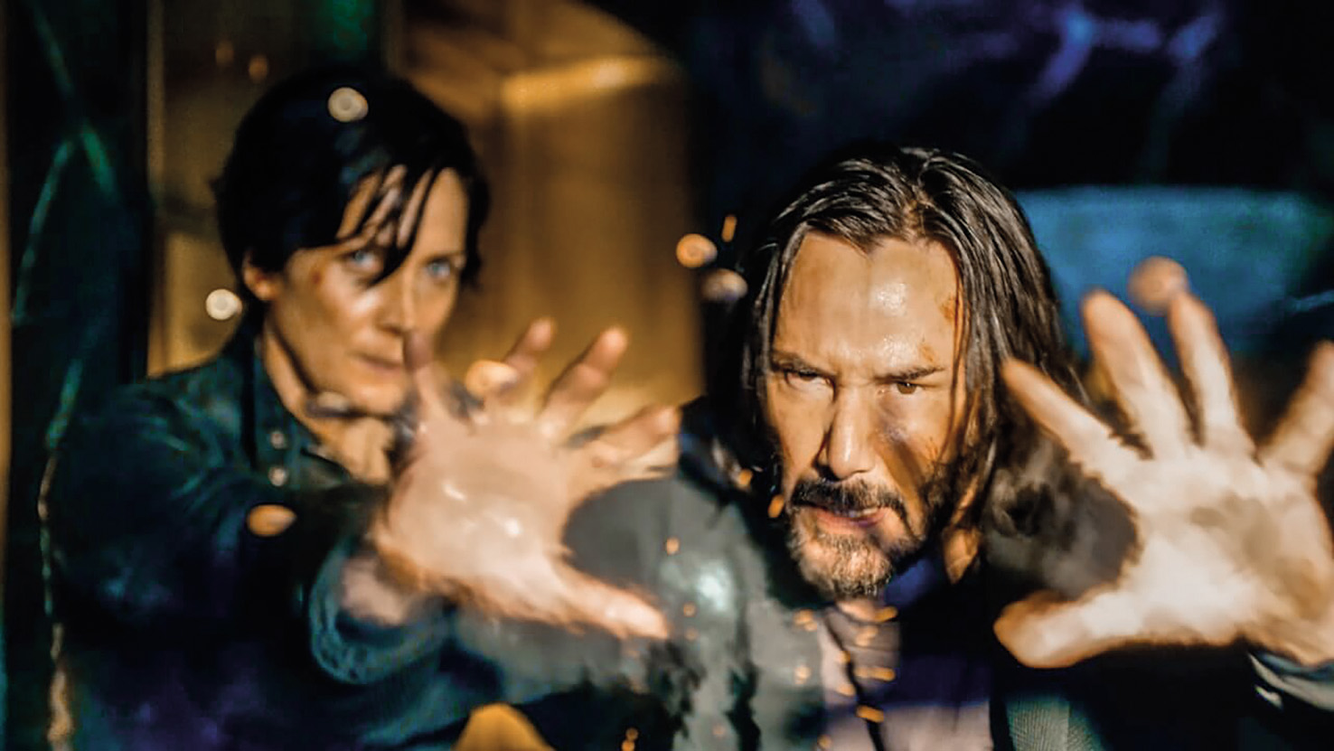 Toda vse to je nekako nastavljeno, tako da se vsiljuje občutek, kot da je vse to, ves ta epski déjà vu, tu le zato, da feni ne bi bili jezni in užaljeni – in da filma ne bi protestno, viralno skenslali. Dalje, Obuditev je metafilm, poln metatrenutkov – liki se zavedajo, da nastopajo v sequelu (magari rebootu), debatirajo o bullet timu oz. bullet-timu (kot da je zunajfilmska refleksija del znotrajfilmskega vesolja), Thomas Anderson (Keanu Reeves), alias Neo, genialni, nagrajeni, osamljeni, amnezični dizajner računalniških igric, ki ne verjame v svet rdeče tabletke (modre tabletke in psihiater mu pomagajo, da »pozabi«), pa je pred dvajsetimi leti izdelal trilogijo Matrica (zgodbo o vrtoglavi vojni med ljudmi in stroji), ki je postala orjaški hit in kult. Arogantni, pohlepni šefi podjetja, ki je v lasti studia Warner, sicer lastnika filmske Matrice, terjajo, da izdela sequel – Matrix 4. Toda občutek imate, da so vsi ti postpostmoderni metatrenutki – nekateri strašni, morbidni, celo unheimliche – tu le zato, da bi film – sicer briljantni remiks žanra, tehnologije in postresničnega, postbinarnega zeitgeista – lažje izrazil distanco in prezir do korporativne logike, blockbusterske sprogramiranosti in studijske robotske arogance: Andersonu namreč cinični šef reče, da bodo sequel Matrice izdelali z njim ali brez njega.