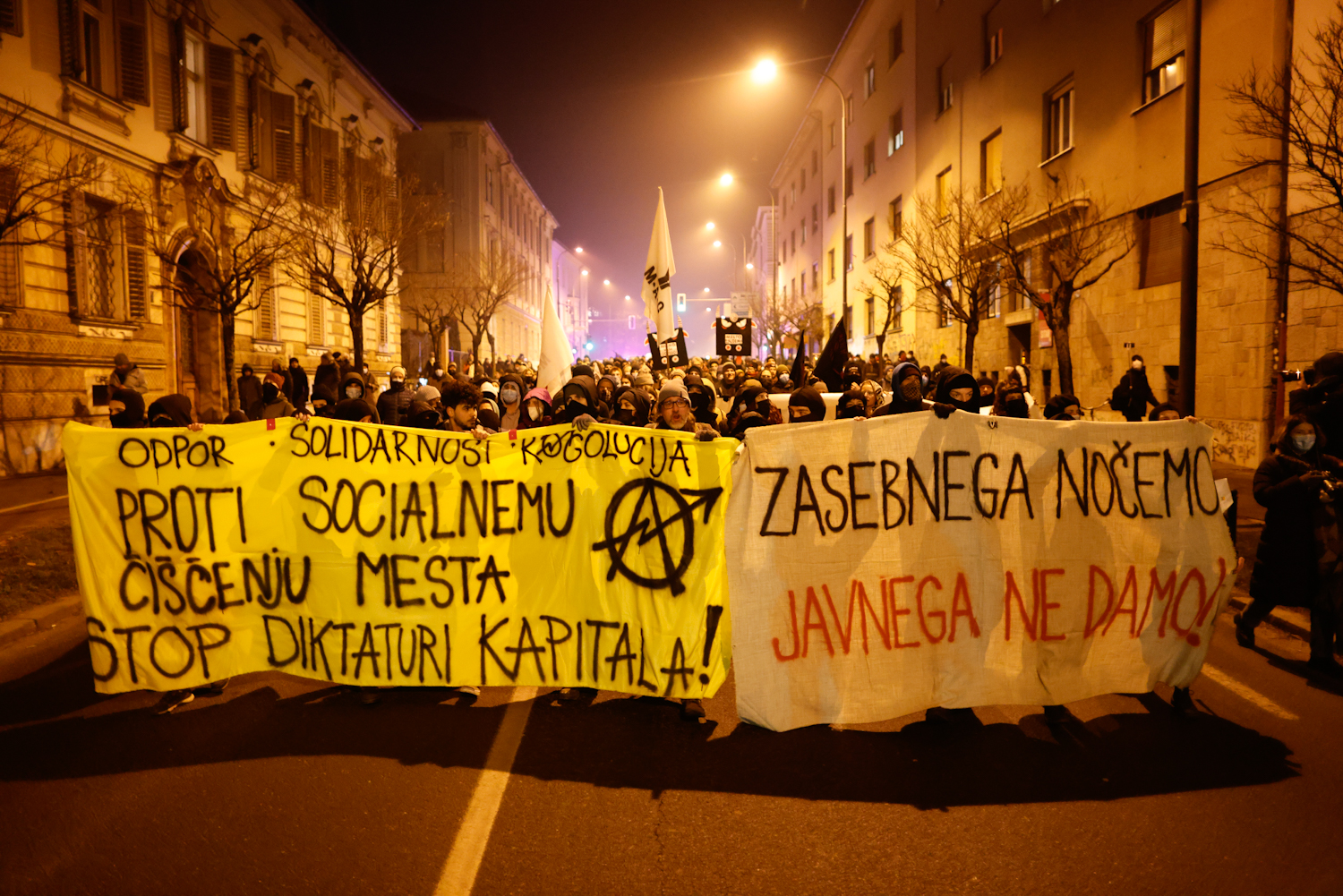 Nocoj je v Ljubljani oziroma na ulicah v središču mesta odvil protest ob obletnici rušenja Tovarne Rog. Prvi del je potekal v parku Tabor, ki je bil napovedan kot shod proti socialnemu čiščenju mesta. Kot so protestniki zapisali na Facebook strani, se javni prostor še naprej privatizira in krči, mesto se prilagaja turizmu in drugim poslom, meščane - še posebej tiste manj premožne, pa se potiska na obrobje mesta in na samo družbeno dno. "Gradbena jama, kjer je še lani deloval pristni avtonomni socialni prostor, je simbol politik, ki uničujejo naše mesto in naša življenja. V teh težkih časih si ne smemo dovoliti, da ostanemo tiho," so pozvali.