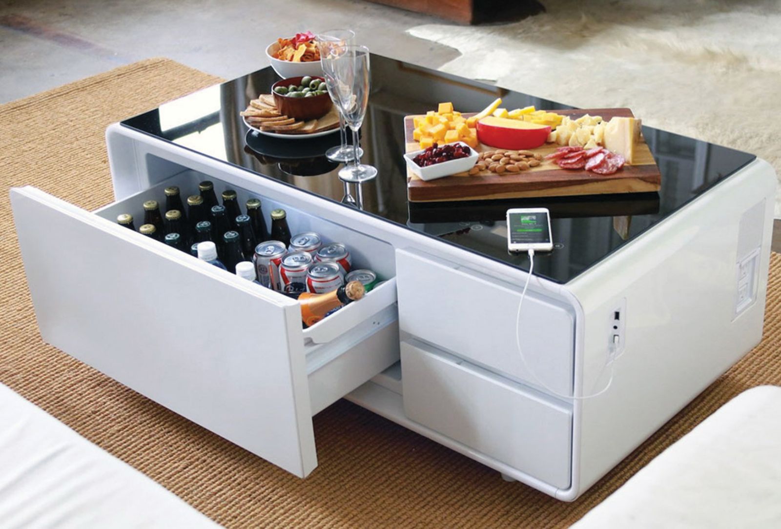 Olimpijske igre so sicer že tik pred ciljem, njihovo spremljanje pa bi bilo nedvomno še večji užitek, če bi imeli pred kavčem posebno pametno pohištvo – klubsko mizico, ki v svojih nedrjih skriva hladilnik in nam tako prihrani sprehode do kuhinje ter celo vstajanje s kavča. Temperaturo v njenem hladilniku je mogoče nastaviti in sega od treh do dvanajstih stopinj Celzija, supermizica pa ima vgrajena tudi zvočnika, ki ju lahko prek povezave bluetooth povežemo s televizijo ali drugim izvorom zvoka. Z njeno pomočjo ne napolnimo le vampa, ampak tudi mobilni telefon in prenosni računalnik, saj ima mizica ob strani USB-priključke in električne vtičnice. Upravlja se s pomočjo zaslona na dotik, ki ga ima na površini – ta je sicer črna in odsevna, narejena iz kaljenega stekla. V postpandemičnih časih, ko se bodo ljudje lahko spet neomejeno in brezskrbno družili, bo nastavljiva LED-razsvetljava pod mizico poskrbela še za ustrezno vzdušje na zabavah. Za zdaj je trenutno najbolj pametna mizica žal na voljo le kupcem v ZDA, ki lahko izbirajo med ohišjem v beli ali črni barvi, različica v vzorcu lesa pa je že razprodana.