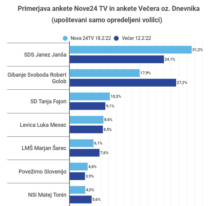 Kot so zapisali, je stranka Gibanje svoboda s 17,9 odstotki daleč za SDS Janeza Janše s 31,2 odstotki. Med svoje ugotovitve so še dodali, da je Golob prevzel vlogo druge najmočnejše stranke z deleži, ki jih je v preteklosti dosegala SD Tanje Fajon, vendar da je deleže stranke SD in drugih iz povezave KUL nastop novega igralca na levi skoraj prepolovil. V anketi Parsifala je SAB Alenke Bratušek močno pod pragom za vstop v parlament, obenem pa v povzetku rezultatov, ki jih je danes objavila Janševa propagandna Nova24TV, poudarjajo, da bi KUL, če mu prištejemo še deleže Golobove stranke, prepričal manj volivcev kot jih je pred dvema mesecema. V praksi naj bi zato Kul več izgubil kot je Golob pridobil.