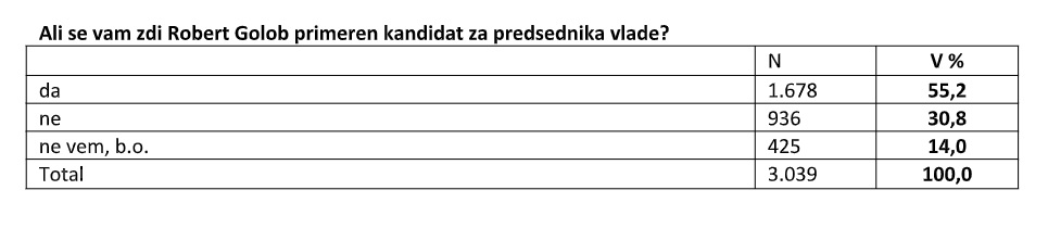 Vprašani so Goloba s 55 odstotki podprli tudi kot najprimernejšega novega predsednika vlade.