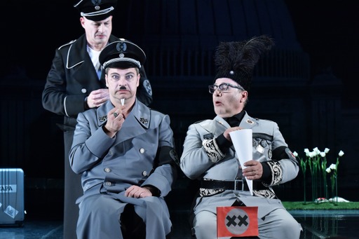 Na Velikem odru SNG Drama Ljubljana bo 11. maja ob 20. uri premiera burleske Veliki diktator, ki jo je po znamenitem filmu Charlieja Chaplina režiral Diego de Brea. Chaplinov film spada med največje filmske mojstrovine, gledališka uprizoritev pa upošteva vso tenkočutnost, nežnost in smešnost pa tudi elegantnost, krhkost in plastičnost karakterizacije likov. Klavirska spremljava, ki jo v živo izvaja pianist Joži Šalej, navdihuje, podpira in poudarja burleskno interpretacijo ter hkrati ostrí prenos s platna na oder.