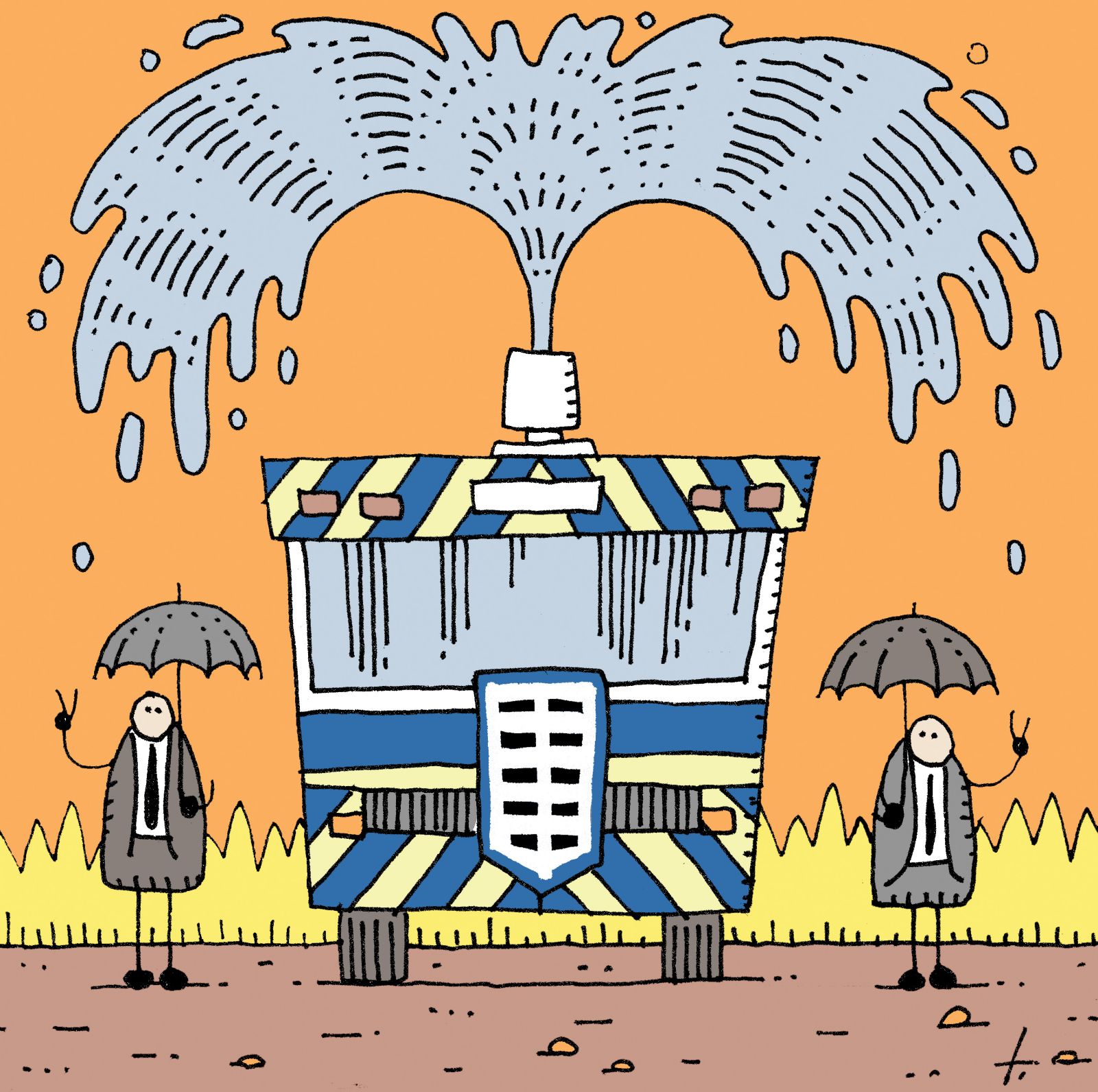 V reševalni akciji je opravila dragoceno vlogo policija, toda poteza ministrice, da pošlje v ogenj vodni top, ki je namenjen preganjanju demonstrantov, se je izkazala kot fiasko. Ne le, da se je mašina kmalu pokvarila, ampak top, ki lahko vozi le po lepi cesti, je popolna neumnost v primerjavi z učinkovitostjo gasilskega avtomobila. Gasilski poveljnik bi za gašenje nikoli ne izbral protidemonstrantskega topa, ki je razen boja zoper protestnike uporaben samo še za zalivanje zelenega pasu ob asfaltnih poteh. Je mar civilna zaščita prosila ministrico, da naj jim pošlje topovsko pomoč? A televizije so na veliko predvajale posnetke topa, ki šprica okoli ceste. Za osebno promocijo ministrice so med stotinami gasilskih avtomobilov našli prostor še vodnemu topu.