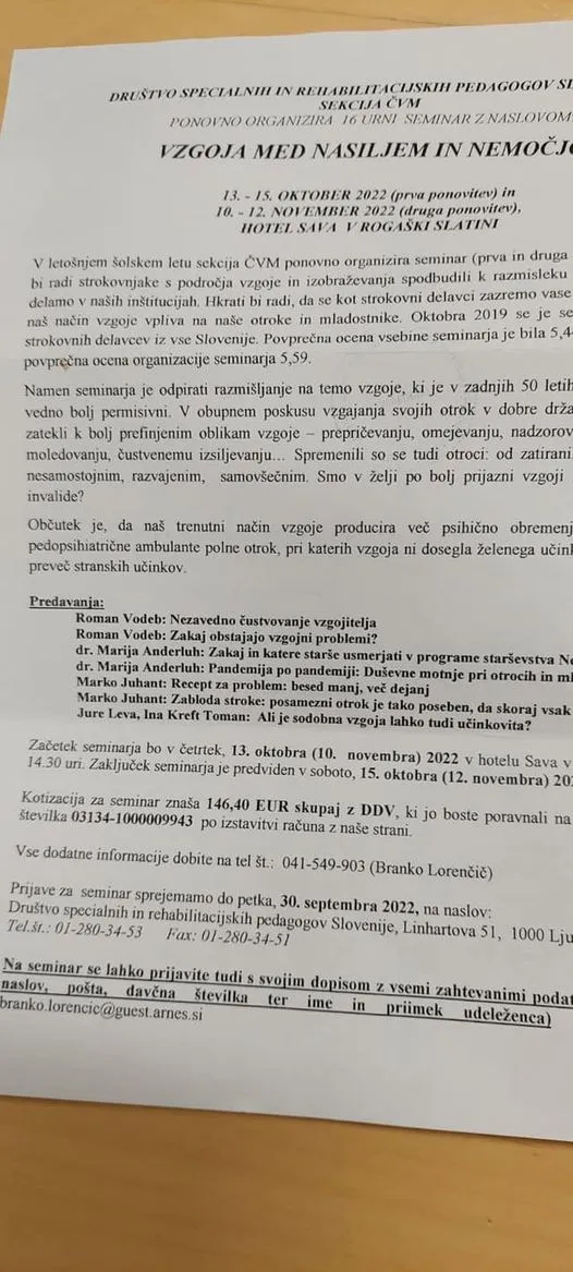 V Društvo specialnih in rehabilitacijskih pedagogov Slovenije potemtakem za izvedbo seminarjev zavestno izbirajo provokatorje med nestrokovnjaki, nato pa slušateljem, ki bi jih vendar morali izobraževati, za to uspešno zaračunavajo!