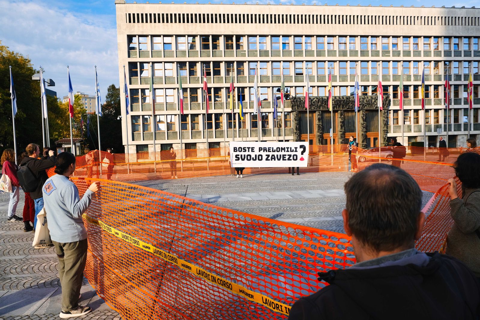 "Naša simbolna privatizacija prostora je namenjena opozarjanju na ignorantski odnos vlade do vseh gospodinjstev, ki živijo v slabih in neprimernih stanovanjih, plačujejo visoke najemnine ali do svojega stanovanja sploh ne morejo priti," je v izjavi dejala Urša Rahne iz iniciative Kje bomo pa jutri spali. S protestnim performansom želijo opozoriti, naj se vlada neha sprenevedati in pretvarjati, da je kar koli drugega kot prenos ustreznih nepremičnin na Stanovanjski sklad RS v javnem interesu.