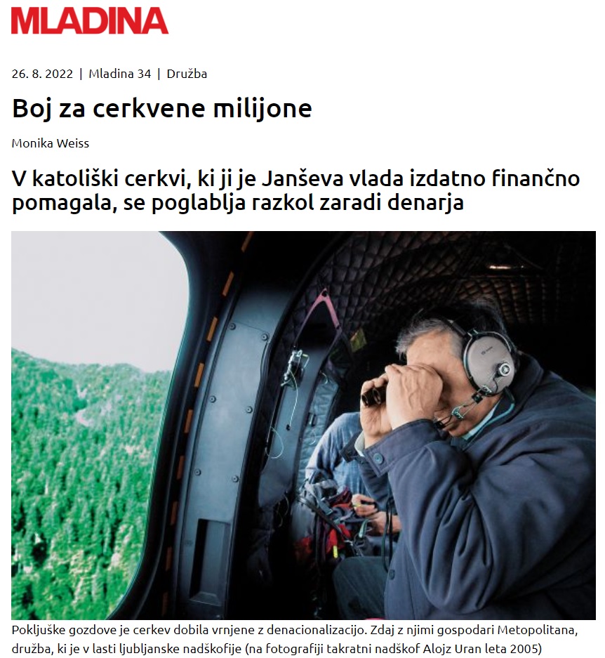 Ob tem poobjavljamo avgustovski članek Monike Weiss, ki je bil objavljen v Mladini z naslovom Boj za cerkvene milijone. V njem smo razkrili, kako se v katoliški cerkvi, ki ji je Janševa vlada izdatno finančno pomagala, poglablja razkol zaradi denarja.