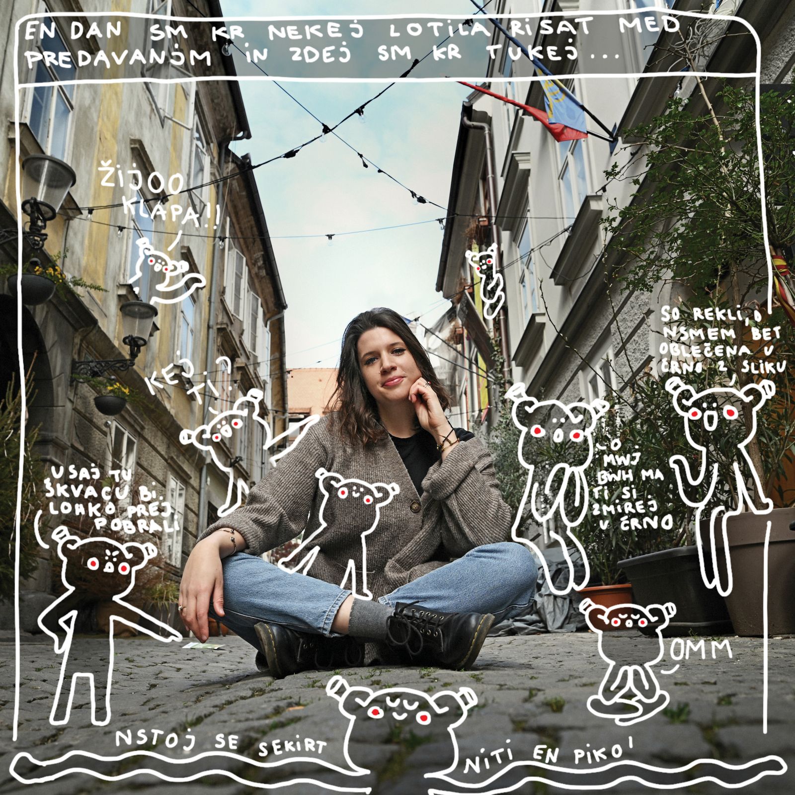 »A ste vi tukaj, da me fotografirate?« je ogovorila nič hudega slutečega moškega, ki se je znašel na ulici, kjer sta bila z Mladininim fotografom domenjena za portret. Ni bil pravi, pa čeprav je imel v roki stojalo in fotoaparat. Tovrstne anekdote se Karolini Marušič dogajajo kar pogosto, kot bi bila magnet za hecna naključja ali bi imelo vesolje zanjo na zalogi posebno zabavne prigode, saj ve, da jih bo s pomočjo svojega čuta za dramatizacijo znala preliti v duhovite stripovske miniature.