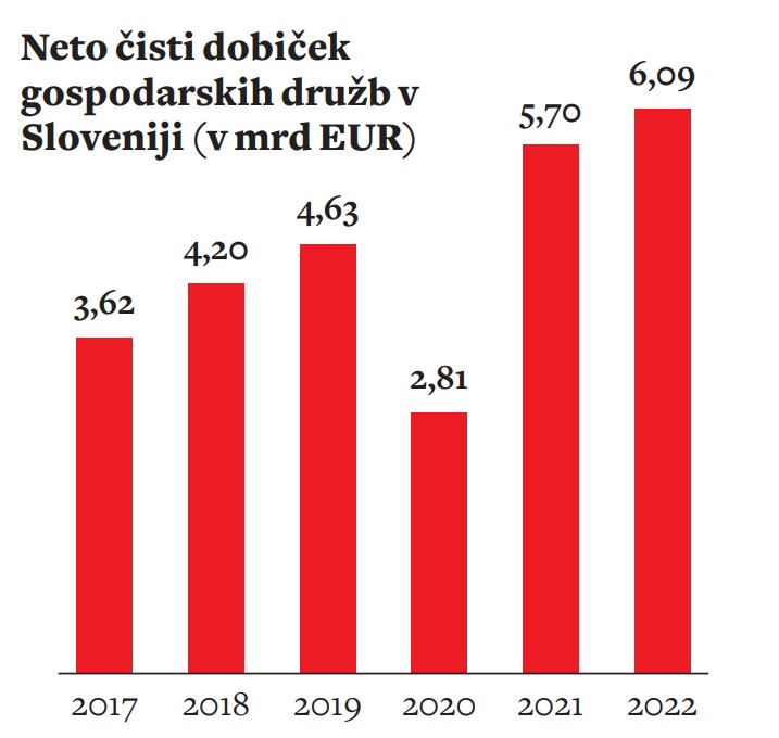 Gospodarske družbe v Sloveniji so lani skupaj izkazale 6,09 milijarde evrov neto čistega dobička, kar je novi rekord po dobičkonosnem letu 2021. A ta novi rekord se je zgodil v letu, ko smo se spopadali z najvišjo inflacijo v zadnjih 27 letih in ko so se življenjske stiske zaradi podražitev povečale najrevnejšim družbenim skupinam, kot so upokojenci. Čeprav lobistične gospodarske zbornice nenehno pozivajo državo k (dodatni) pomoči gospodarstvu in država blaži draginjo z različnimi ukrepi (v prvih treh mesecih letos so stali 237 milijonov evrov), pa dosežen lanski rekorden kumulativni dobiček gospodarskih družb potrjuje, da so številna podjetja v Sloveniji zlorabila splošno inflacijsko ozračje in prek podražitev ustvarila rekordne dobičke za svoje lastnike in lastne bonuse. Vse več je pozivov, da je treba to »indeksacijo dobičkov« ali »inflacijo pohlepa« namesto s centralnobančnim višanjem obrestnih mer brzdati drugače – ukrepati mora politika, z nadzorom cen, zlasti v sistemsko pomembnih sektorjih, kot je ob energiji vsaj še hrana.