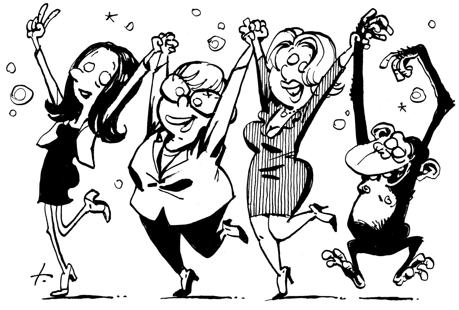 Zmaga v OZN je povzročila nepopisno navdušenje. (najbolj so se je razveselile najzaslužnejše, prve dame slovenske politike – babuška, fajonka, klokočarka in posvojena urška press)