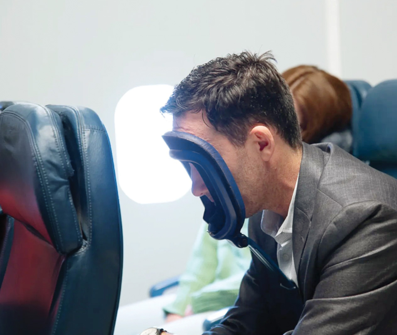Zaradi težav med letom iz Singapurja v ZDA je bila Chloe Hill na letalu ujeta kar 32 ur, to pa ji je bil navdih za naslonjalo za glavo, ki omogoča počitek in pri katerem se ne naslonimo nazaj, temveč z obrazom naprej. S partnerjem Darrylom Yangom sta ustvarila podjetje Hypnap, ki ponuja Trurest, kot so naslonjalo poimenovali. Namontiramo ga na letalsko mizico pred sabo, se nagnemo naprej ter položimo obraz v oblazinjeni okvir, ki spominja na odprtino v masažni mizi; tisto, v katero zakopljemo obličje, ko ležimo na hrbtu. In prav to predlagata stvaritelja naslonjala – da gre za pripomoček, ki je v bistvu mini masažna miza, saj razbremeni hrbet, vrat in ramena, tako pa podpira ne le glavo, temveč celoten zgornji del telesa. Uporabniku omogoča globlje dihanje, ki zmanjšuje občutek napetosti in tesnobe, z njegovo pomočjo lahko spimo in tudi beremo. Naslonjalo ne pomeni prevelikega bremena za ročno prtljago, je zložljivo in tehta pol kilograma. Uporabno je tudi na vlaku, če med vožnjo radi zakinkamo, pa v kavarnah, pisarnah in čakalnicah, če je na voljo miza za pritrditev.
