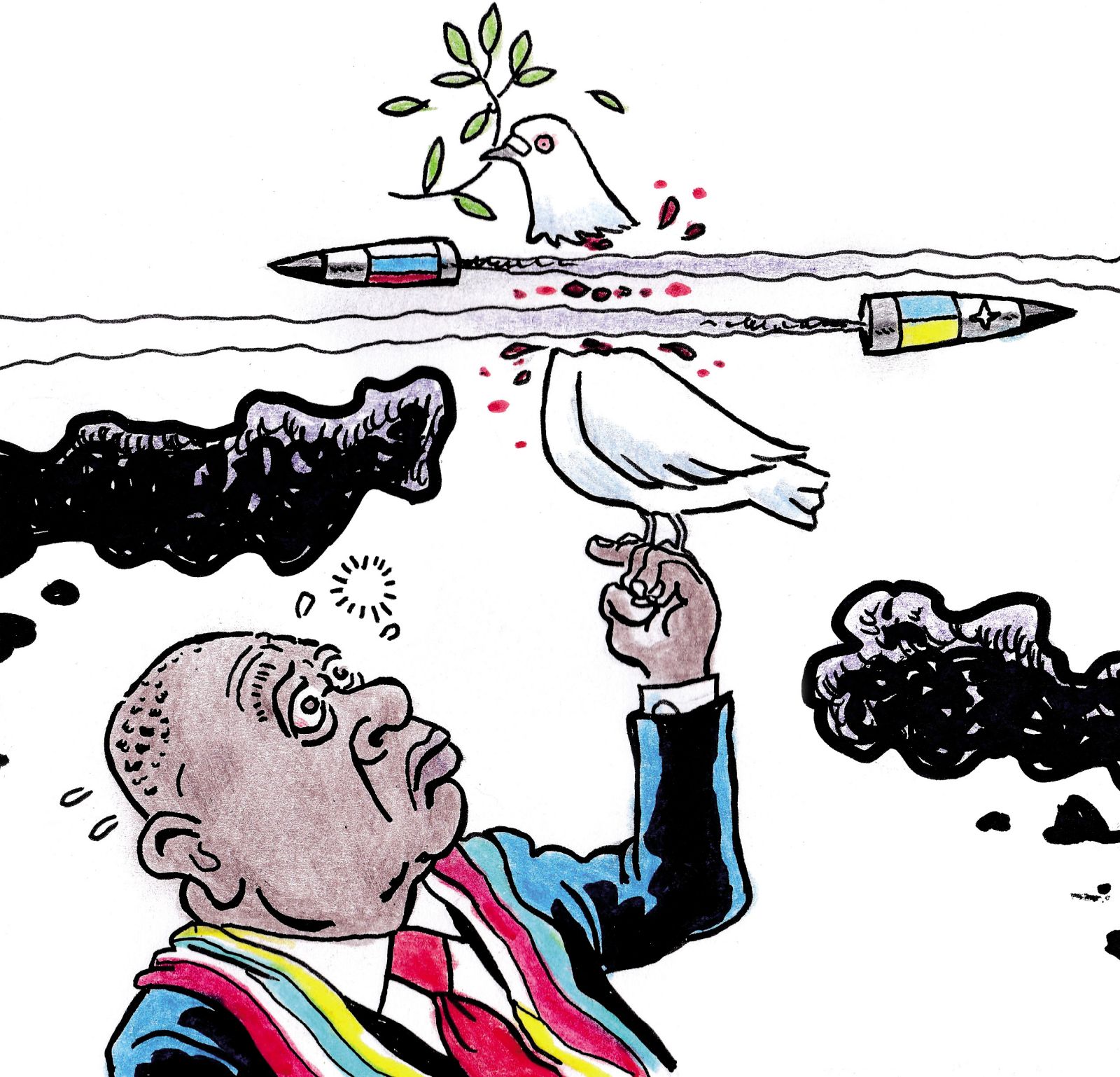 »Ramaphosa je pozval Ukrajino in Rusijo k deeskalaciji konflikta. ’To vojno je treba rešiti in moralo bi priti do miru s pogajanji’ … novinarjem pa je še dejal, da so prepričani, da ’mora priti do deeskalacije na obeh straneh’.«
