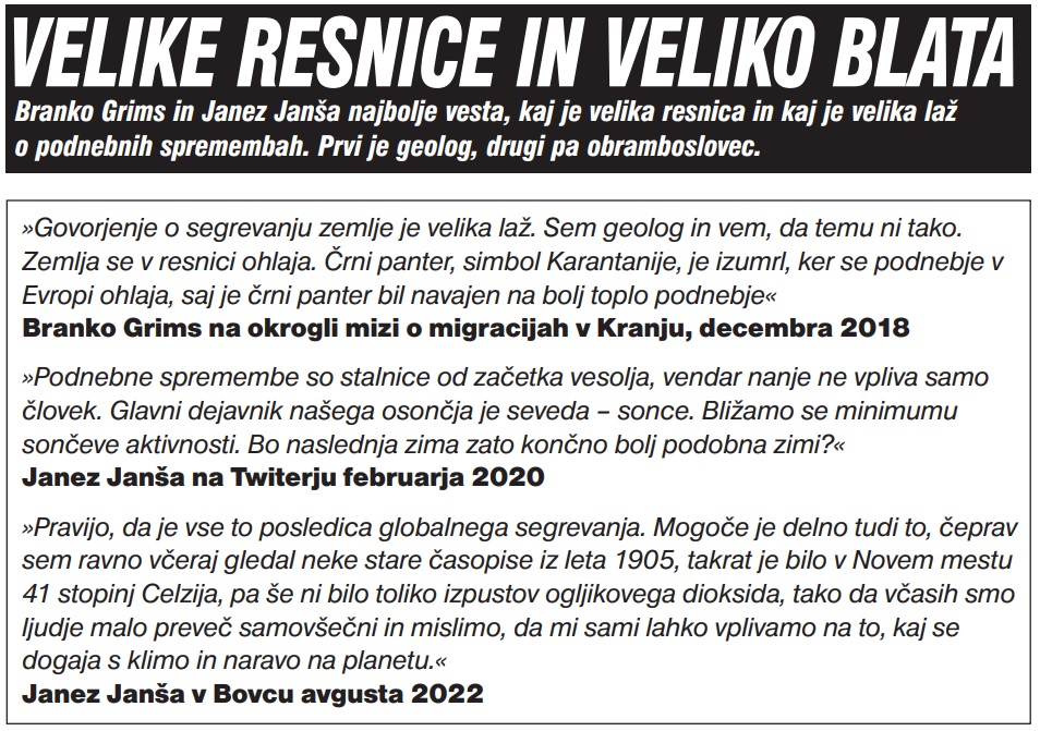 Branko Grims in Janez Janša najbolje vesta, kaj je velika resnica in kaj je velika laž o podnebnih spremembah. Prvi je geolog, drugi pa obramboslovec.