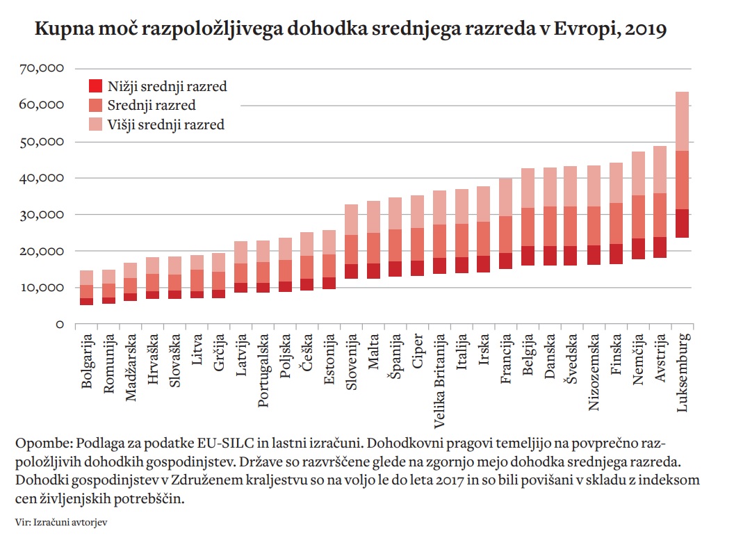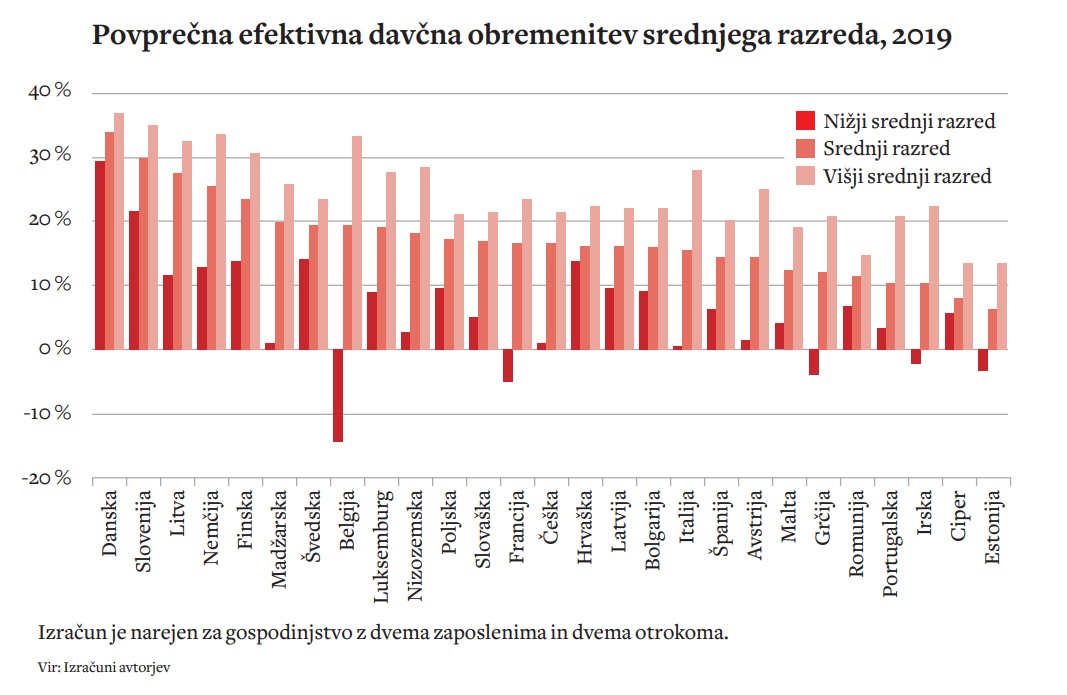 Po raziskavi Ifa se v srednji razred štejejo gospodinjstva s 75 do 200 odstotki povprečnega dohodka gospodinjstva v državi. Raziskava navaja, da ima Slovenija med 28 državami EU (upoštevano je leto 2019, ko je bilo v EU vključeno še Združeno kraljestvo) drugo najvišjo davčno obremenitev gospodinjstev z dvema zaposlenima in dvema otrokoma. Pred Slovenijo je le Danska, takoj za Slovenijo pa so Litva, Nemčija, Finska in Madžarska.