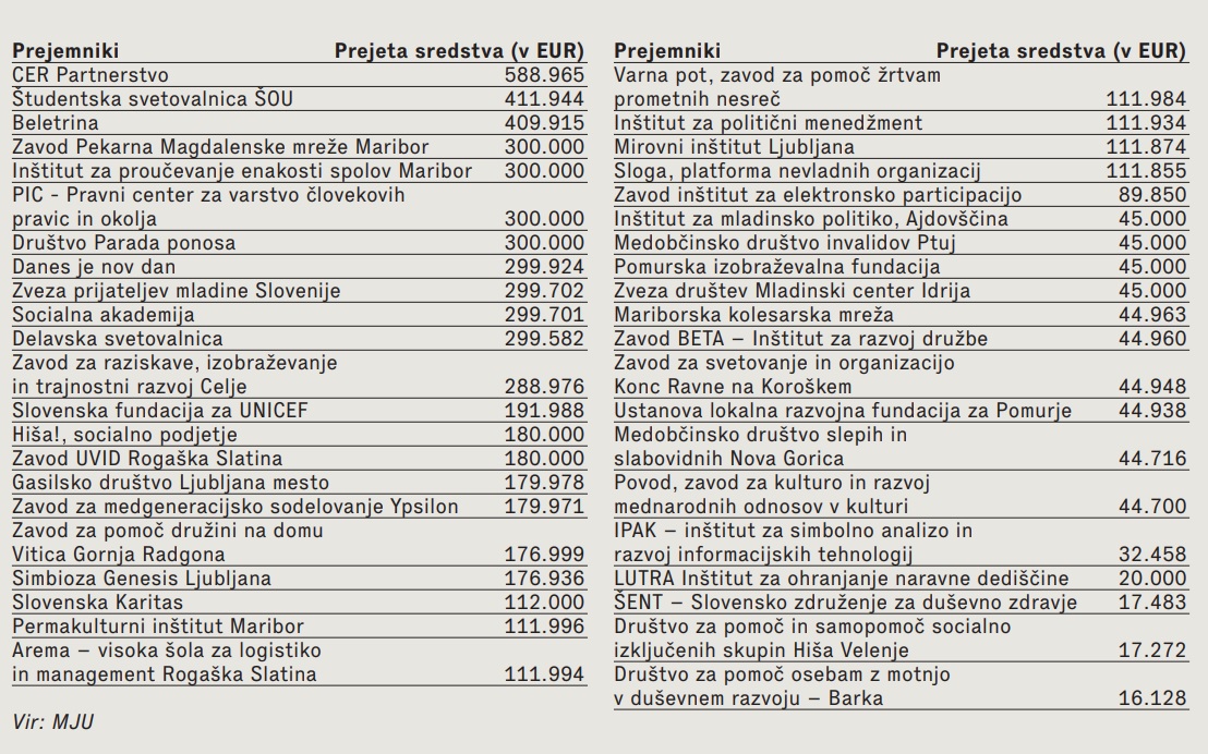 Med največjimi prejemniki denarja na razpisu za krepitev aktivnih državljanskih pravic in opolnomočenje nevladnih organizacij je biznis