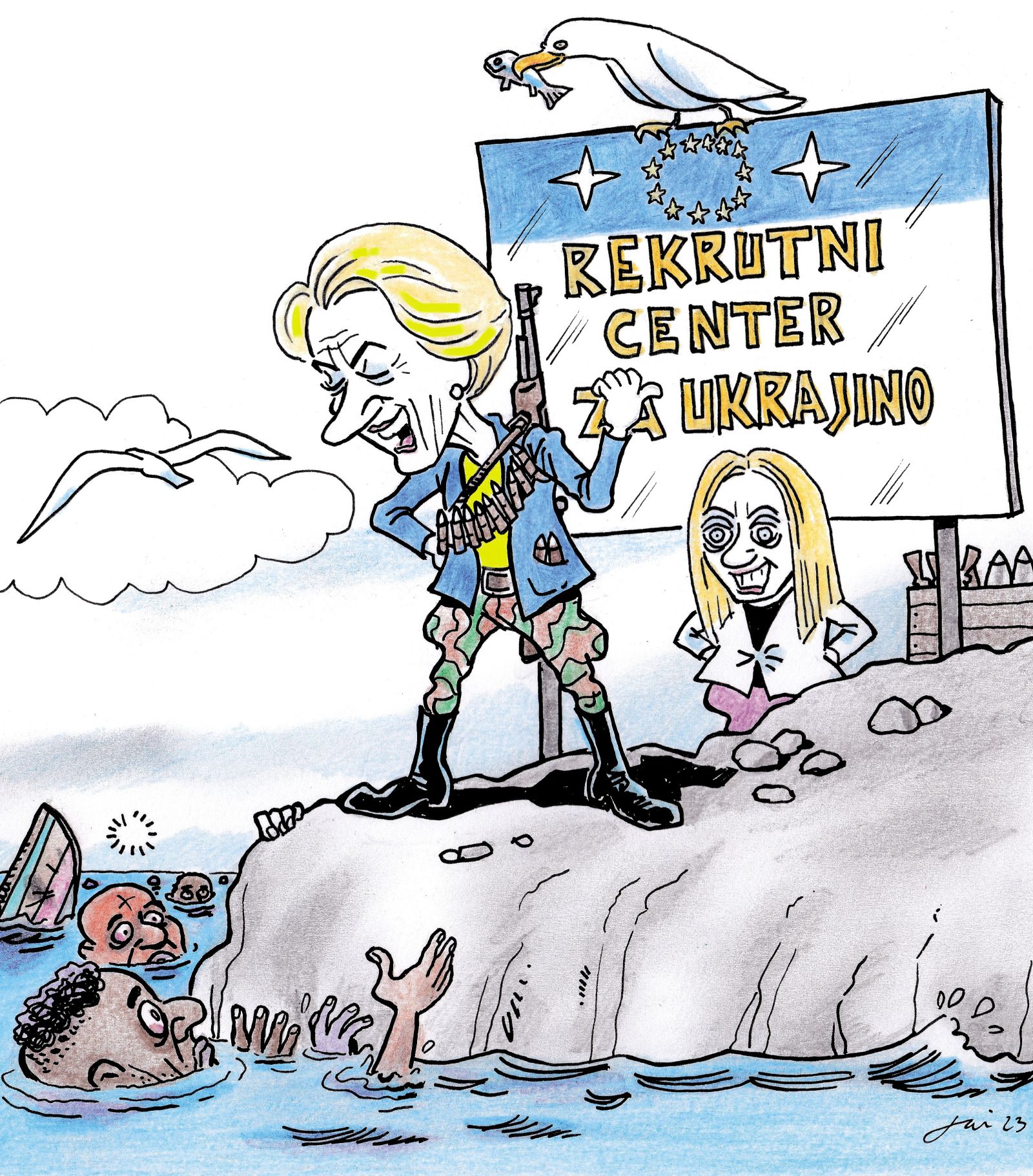 Ko to pišem, je 574. dan od začetka ruske »posebne operacije«, kot so poimenovali svoj pohod nad Ukrajino. Od vsega začetka so bili pod različnimi posredništvi (vsaj na začetku pa tudi neposredno) poskusi mirovnih pogajanj, ki pa so bili v kali zatrti, ker igralci, ki premikajo Ukrajince na šahovnici, niso bili zainteresirani. In tisti, ki so s spontanimi akcijami, proglasi, peticijami etc. pozivali k miru in brezpogojnemu končanju vojaškega reševanja diplomatskih odprtih vprašanj, so tudi pri nas dobili opozicijo v vojnih hujskačih, ki so trdili, da so sicer za pravični mir, a da ga lahko zagotovi le vojna. Tisti, ki bi na nasprotno stran ponesli oljčno vejico s tanki ali letalniki, sedaj, ko je umrlo na desettisoče mladih ljudi in vojna traja v nedogled, pritajeno molčijo. Ali jih je kaj sram, ali jih kaj peče vest, ne vemo. A ni odpovedal samo del civilne družbe, ki ni dojel večkrat empirično preverjene resnice, da je najslabši mir sprejemljivejši od najboljše vojne. Odpovedal je ves politični razred »demokratičnega sveta«. Zato se sedaj z vsem arzenalom, ki je bil v imenu demokracije poslan na bojišča, mir ne približuje, ampak vse bolj izginja na obzorju. Res je, da v Ukrajini divja nekakšna proxy vojna velikega čezatlantskega brata, a je sramotno pozicijo zavzela tudi Evropska unija. Združene Evrope ne bodo uničile epidemije, ne finančne in gospodarske krize, ne suše, ne požari, ne povodnji ... ampak njena nedoslednost. Je pa vojna v Ukrajini, čeprav še tako krvava, samo eden od kazalnikov te nedoslednosti. Tako kot generalni sekretar Nata Stoltenberg deluje arogantno in brezdušno tudi predsednica evropske komisije (sicer pa menda bodoča generalna sekretarka zveze Nato) Ursula von der Leyen, ki je bila pred dnevi v središču bizarne arogance, kakršno premore le vrhunski evropski birokrat. Namreč, potem ko je nov begunski val otoček Lampedusa spravil v neznosen položaj, je na kraju samem rekla: »Italija se lahko zanese na EU.« Ko bi bila vsaj tiho. EU je v zvezi z vsemi kritičnimi situacijami, tako tudi z begunci, požrla še vsako obljubo, vsako zavezo. Zato je ta evropski refren računajte na nas bolj žuganje kot obet. Evropska solidarnost v vsaki resni situaciji zataji. Da je obisk Ursule von der Leyen na terenu resnično norčevanje, sta samo dan kasneje potrdili dve veliki igralki na evropskem odru: Francija in Nemčija. Francoski notranji minister Gerald Darmanin je z značilno francosko politično aroganco pojasnil, da bi bilo »zmotno misliti, da je treba pribežnike zaradi prihoda v Evropo takoj razporediti po vsej Evropi in Franciji, ki že nosi del bremena«. Nemčija pa, da beguncev z Lampeduse v okviru prostovoljnega solidarnostnega mehanizma ne namerava sprejeti, ker se zavzema za sprejetje dogovora o paktu o azilu in migracijah, da bodo prosilci enakomerno razporejeni po članicah. Kar sicer zveni logično in pravilno, a je v sedanjem položaju v bistvu prispevek k poglabljanju krize.