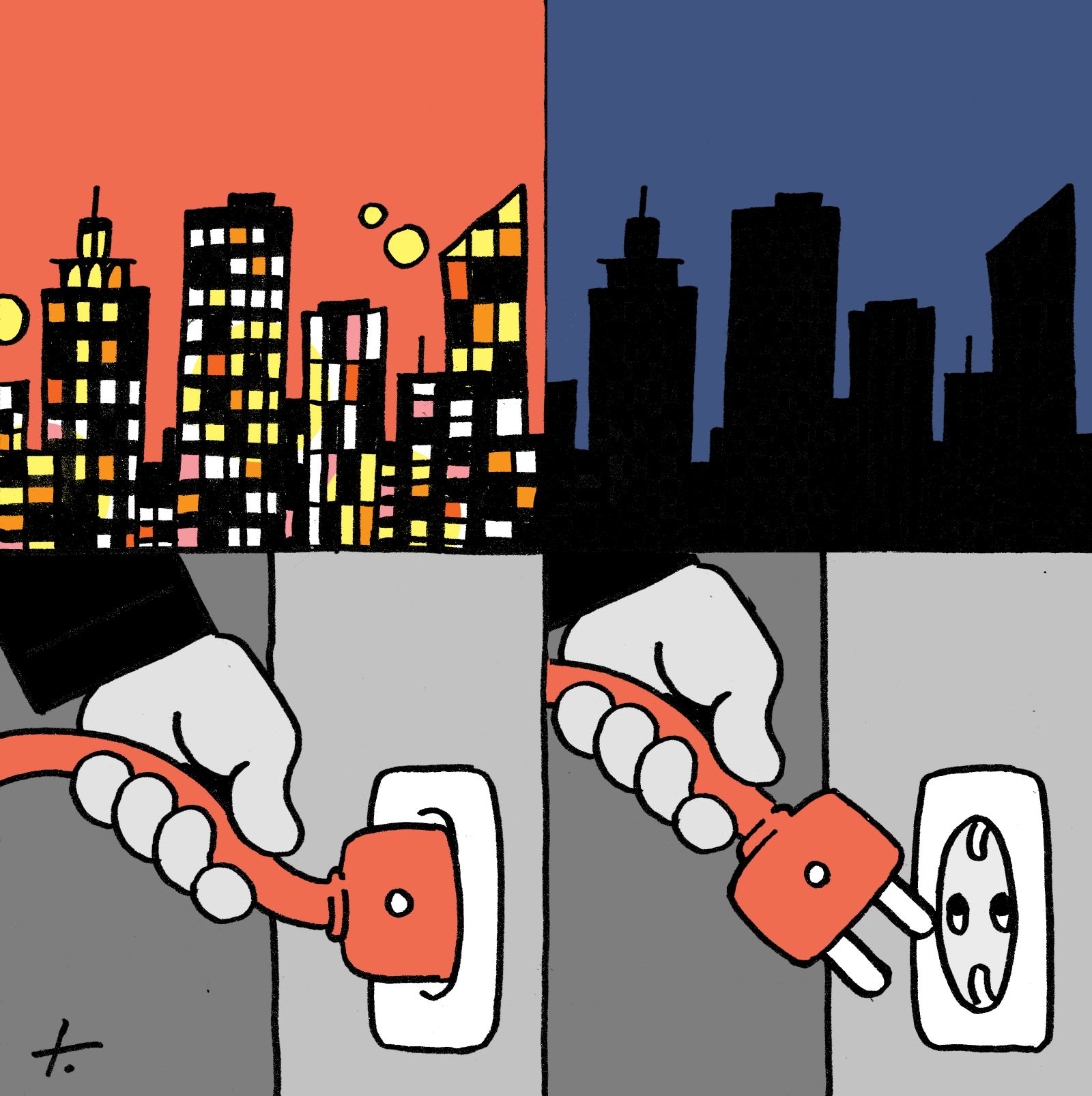 Kaj bi si mislili o državi, kjer daje predsednik države navodila elektro-omrežju, kdaj naj uporabnikom izključi elektriko? Jasno, vlada ji despot in trinog, ki posameznim institucijam neposredno ukazuje, kaj naj naredijo. V Ljubljani je pred tednom ob rajanju skupine Green Dragons župan Zoran Janković osebno ukazal elektro podjetju, da naj na ulicah mestnega središča za četrt ure izklopi elektriko! Samodrštvo, ki pa je že tako kapilarno ponotranjeno, da so šli odgovorni protizakonito izključiti ulično razsvetljavo. In naslednjič bo premier na sprehodu z izvoljenko na bregu Ljubljanice začutil, da je pogled na polno Luno bolj romantičen brez umetnih luči, in bo dal za čas sprehajanja pogasiti ulične svetilke.