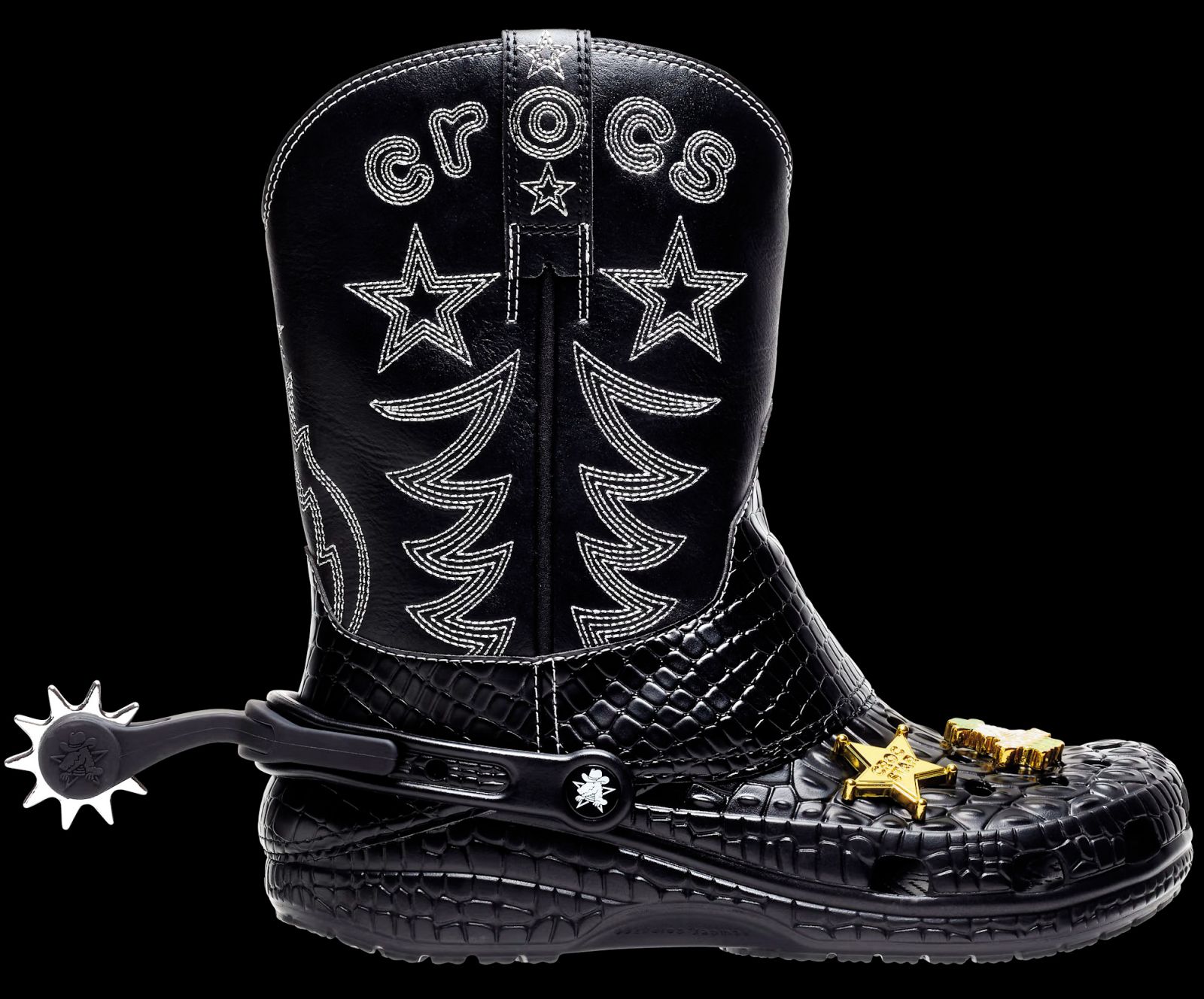Letošnji oktober je postregel z nadpovprečno toplim vremenom in bil tako primeren za krokse, ki sicer veljajo za poletno obutev. V njih smo lahko obeleževali tudi 23. oktober, praznik kroksov, ki ga v ZDA praznujejo na dan krokodilov – ti sicer predstavljajo maskoto blagovne znamke Crocs že vse od njenega nastanka leta 2002. Natikači, nad katerimi nekateri vihajo nos, drugi pa jih obožujejo, so se lani znašli celo v Buckinghamski palači: kot je poročal The Guardian, je bil na prvem kosilu s prejemniki reda za zasluge, ki ga je priredil kralj Karel III., v rumeni par kroksov obut znameniti slikar David Hockney; kralj naj bi bil nad umetnikovo izbiro obutve navdušen. Letos so praznik kroksov izdelovalci kronali z modelom, ki so ga navdihnili klasični kavbojski škornji. Gre za črne kroks škornje z vezeninami na zgornjem delu in plastično imitacijo krokodilje kože v spodnjem delu. Spredaj so prepoznavno okrogli, na peti imajo snemljive ostroge, ob straneh pa značilne luknje, zaradi česar niso primerni za luže. Na voljo so v omejenem številu, po ceni sto štirinajst evrov za par. Kot vsi drugi primerki so tudi ti narejeni na Kitajskem.