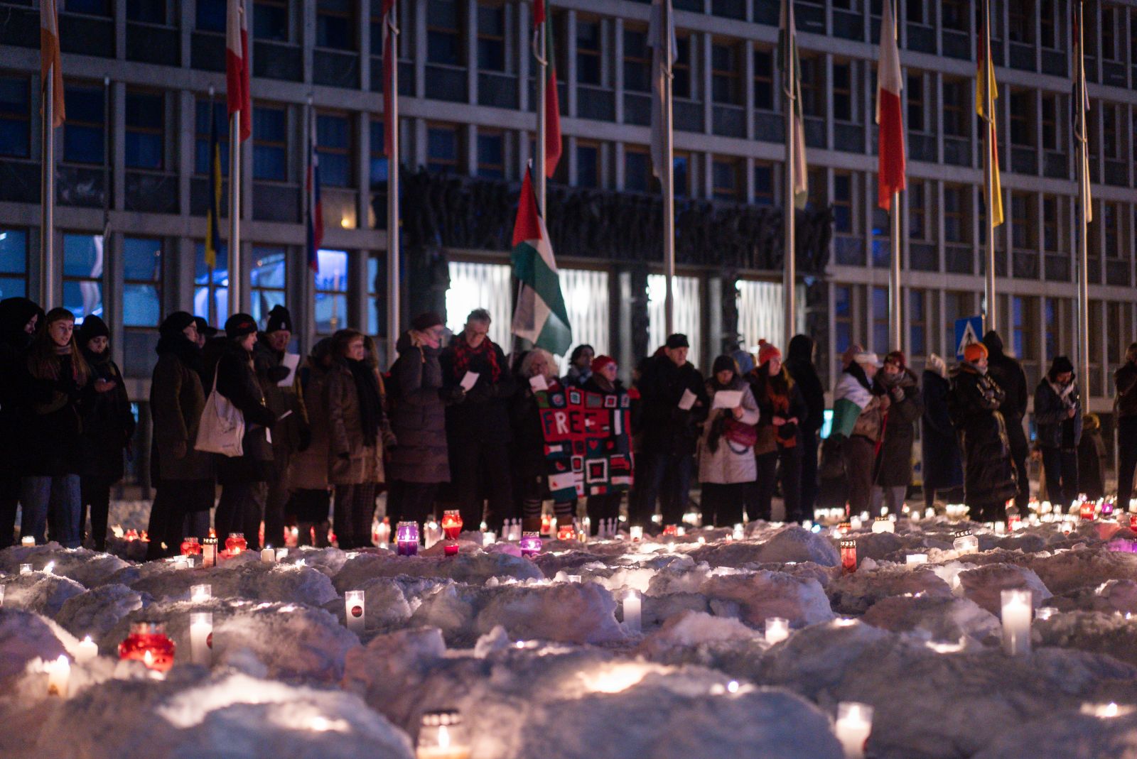 V ponedeljek, 22. januarja 2024, je več kot tisoč ljudi v na ljubljanskem Trgu republike prižgalo sveče v imenu pobitih, ranjenih in izginulih prebivalcev Gaze. Postavili so jih pod zastave držav Evropske unije (EU), ki stojijo nasproti vhoda v Državni zbor Republike Slovenije.