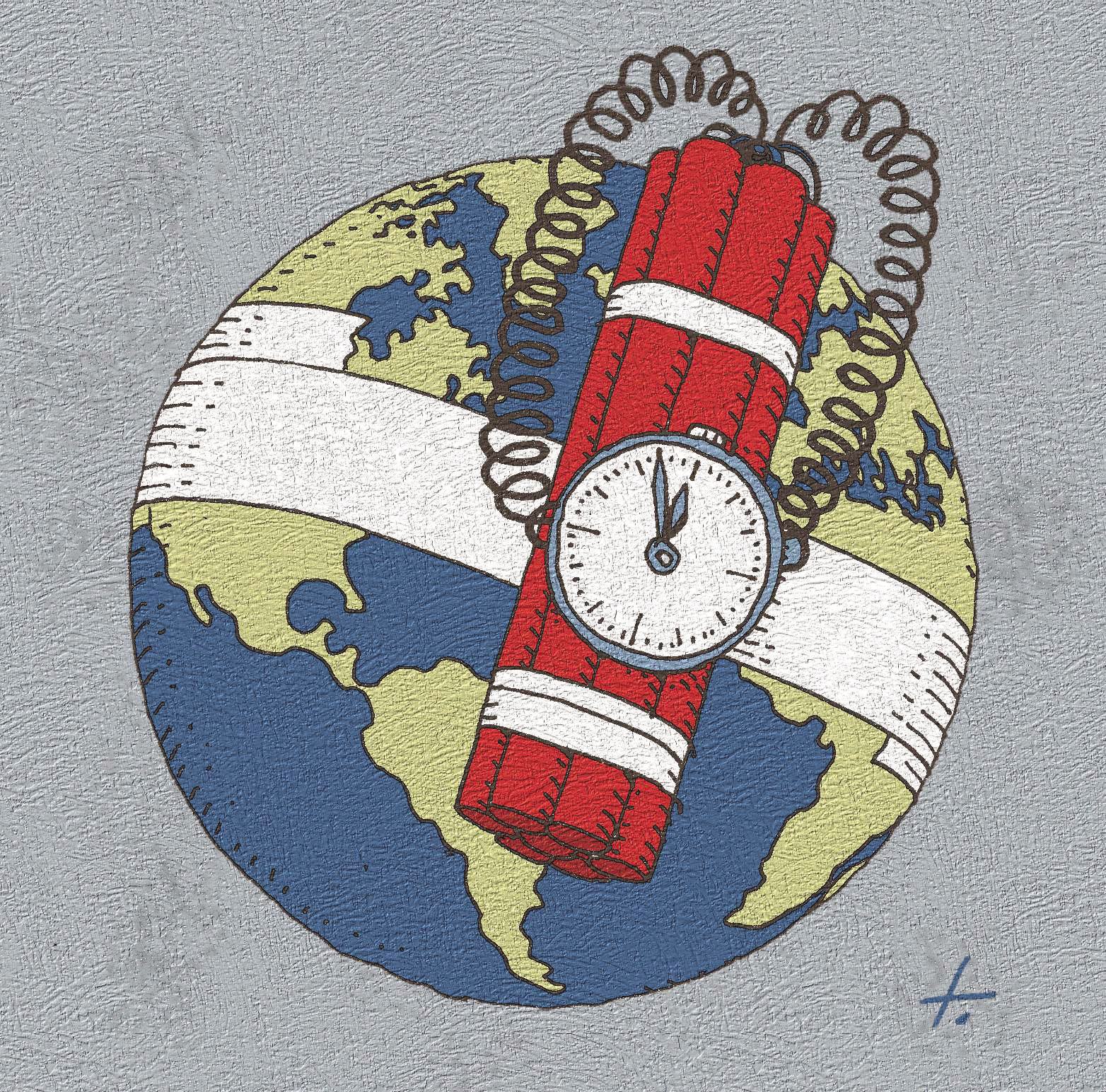 Vrnimo se k uri sodnega dne. Obe glavni grožnji – jedrska vojna in podnebna kriza – se še večata. Res so nekatera znamenja dobra – obnovljive energije hitro napredujejo, kaka avtoritarna država (Brazilija, Poljska) spet postane demokratična, Trump morda ne bo izvoljen, okoljska tesnoba se krepi … Toda slabi procesi (segrevanje, avtoritarnost, oboroževanje, geopolitika …) so močnejši in hitrejši.