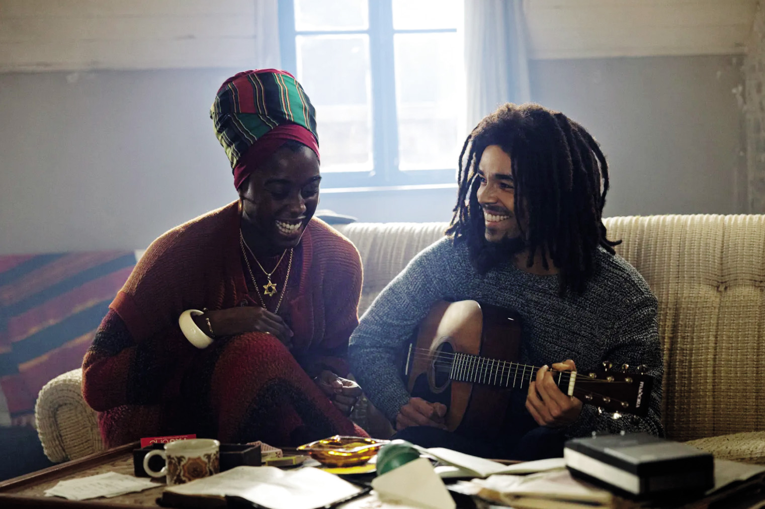 Filmske biografije glasbenikov so kot slovenske športnice – nadpolitične. In kakopak nadstrankarske. Hočem reči: filmske biografije glasbenikov, ki jih je čedalje več (in ki so čedalje bolj wikipedijske), vedno malce porežejo – glasbenikom odbijejo robove. Bradley Cooper je v Maestru porezal slovitega dirigenta in skladatelja Leonarda Bernsteina – o tem, da je podpiral levičarske projekte, da je agitiral proti vietnamski vojni, da je zbiral denar za obrambo črnih panterjev, da je pozival k jedrski razorožitvi in da je njegov FBI-jev dosje štel več kot 800 strani, ni bilo ne duha ne sluha. Politika bi publiko le zmedla in odbila. Bob Marley se začne leta 1976 s spodletelim atentatom na Boba Marleyja (Kingsley Ben-Adir), jamajško legendo reggaeja. Nič političnega ali ideološkega ni bilo v tem atentatu, nas prepričuje film – le »ulica«, stranski produkt postkolonialnega kaosa (Britanci so Jamajko »zapustili« leta 1962), je bušnila v Marleyjev dom. Toda v tem atentatu je bilo nekaj političnega. Mar ni bil Marley slavnejši in vplivnejši od vseh jamajških politikov skupaj? In mar se ta atentat ni zgodil tik pred Marleyjevim velikim mirovniškim koncertom Smile Jamaica, za katerega je bilo jasno, da bo Marleyjeva tiha predvolilna podpora demokratično socialistični Ljudski nacionalni stranki?