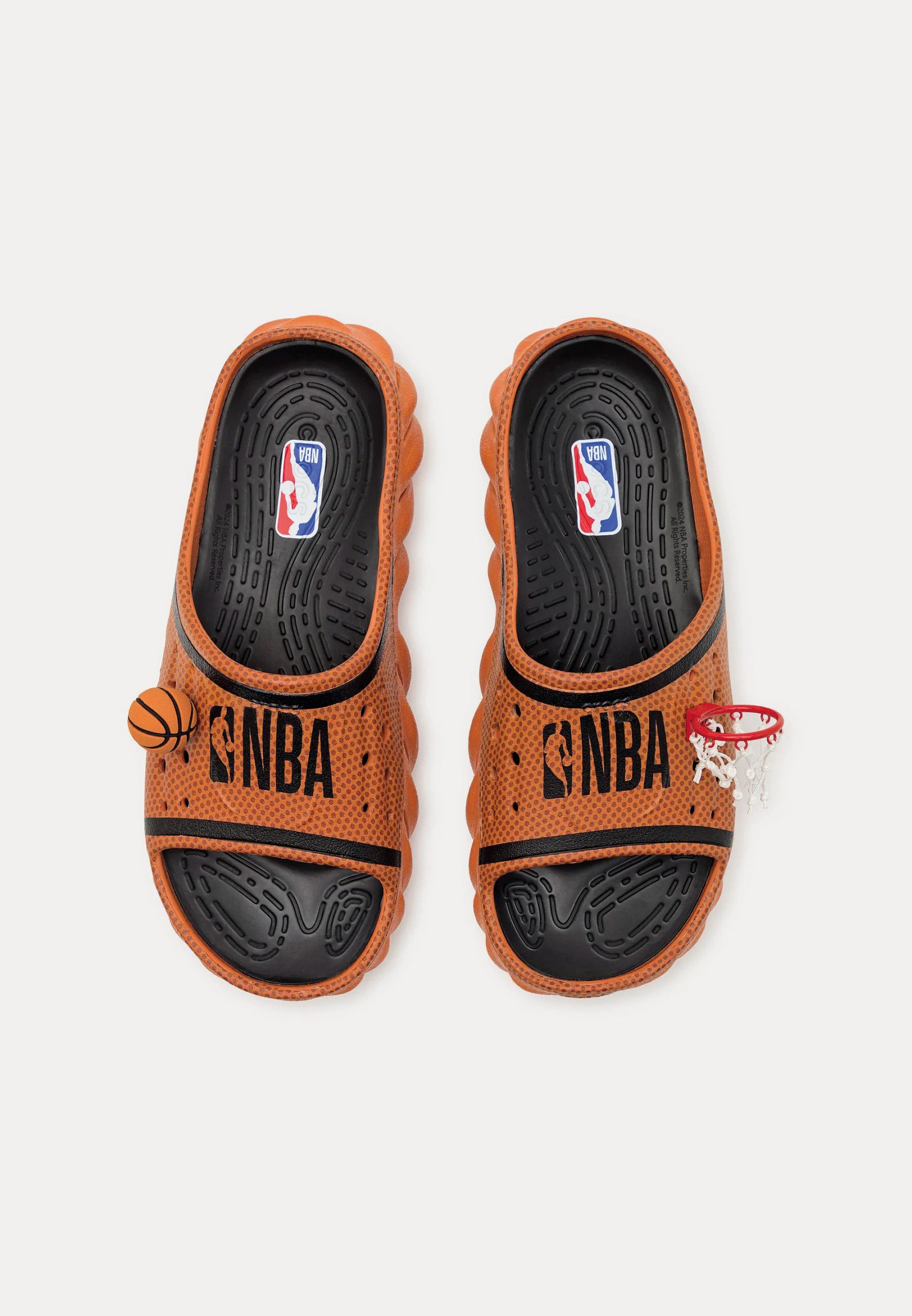Preden odrinete na poletne počitnice, bo treba iti še kar nekajkrat spat, a nemara ne bo odveč, če že zdaj razmislite o tem, kaj boste letos na morju nosili na nogah. Ako vam utrip poskoči ob severnoameriški profesionalni košarkarski ligi NBA ter obuvala znamke Crocs povezujete z udobjem in praktičnostjo, se le hitro zagrebite za njihove nove natikače iz kolekcije Echo, ki so prek spleta kot »natikači za na bazen« že naprodaj tudi pri nas. Namenjeni so ženskam in moškim, izdelani iz materiala croslite, ki ni ne guma ne plastika, ter vliti v enem kosu. Krasi jih logo NBA ter miniaturni koš s čisto pravo mrežo na levi in minaturno košarkarsko žogo na desni šlapi. Oba okraska sta, kot je pri kroksih v navadi, snemljiva, možno pa ju je seveda dopolniti z okraskom najljubšega moštva lige. Poleg lukenj za okraske imajo natikači še luknje za ventilacijo in za odtekanje vode. Čeprav se barvno povsem ujemajo s klasično košarkarsko žogo in posnemajo tudi njen vzorec, se v njih ni priporočljivo športno udejstvovati, saj lahko hitro pride do poškodb; primernejše so za komentiranje tekem s sodrugi ob kakšnem šanku.