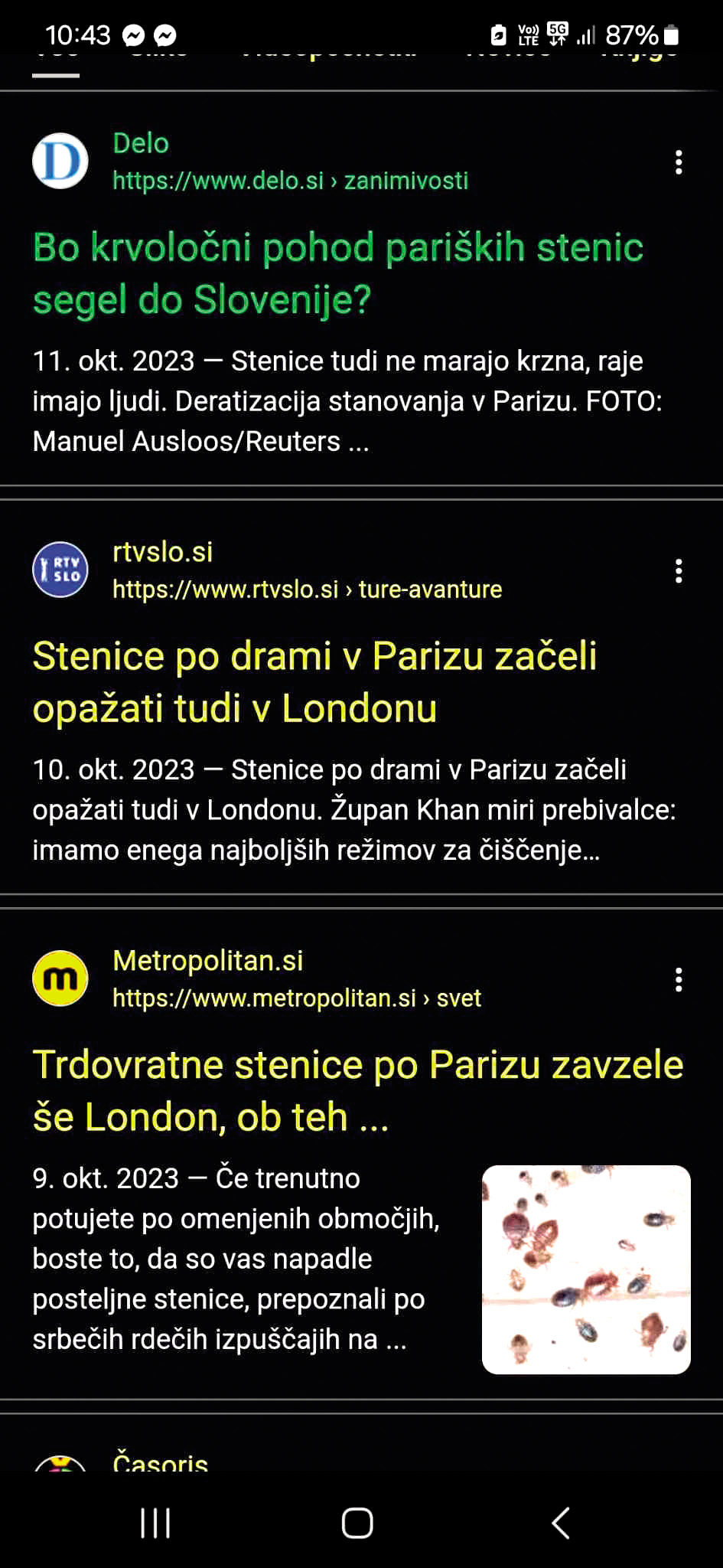 Stenice so odšle na izlet v Pariz in ga preplavile – so zapisali v Časorisu, časopisu za otroke lani oktobra. »Bo krvoločni pohod pariških stenic segel do Slovenije?« so zapisali v Delu isti teden. »Stenice po drami v Parizu začeli opažati tudi v Londonu,« so nadaljevali na RTV Slovenija. »Parižani obupani zaradi stenic, ki mrgolijo povsod,« je pisalo na N1. »Panika in gnus v Franciji: državo preplavile stenice,« so nadaljevali v Siolu. »Stenice tudi v Sloveniji: kaj na terenu opažajo podjetja,« so šli na N1 raziskovalno naprej. »Invazija stenic: kar se dogaja v Parizu, bi se lahko kmalu zgodilo po celem svetu,« je zapisal spletni časopis Slovenec. In kot da to ne bi bilo dovolj, smo jih že videli naprej proti jugu: »Nadloga iz Pariza prispela na Hrvaško! Ali sploh veste, kako se prenašajo?« so kolegi pri 24ur še prilivali olja na ogenj ...