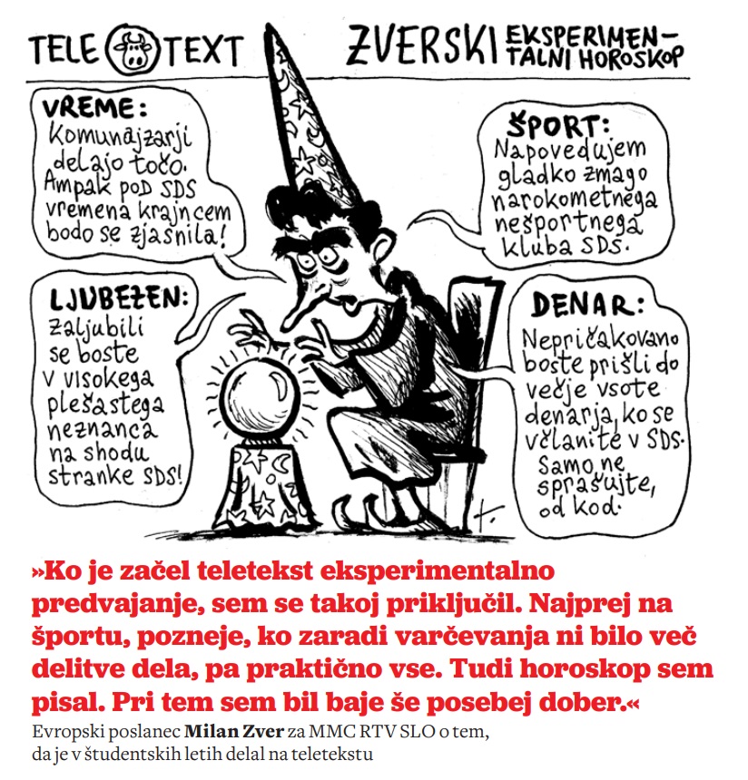 Milan Zver / »Tudi horoskop sem pisal. Pri tem sem bil baje še posebej dober.« IZJAVA TEDNA Tomaž Lavrič 13. 5. 2024 © Tomaž Lavrič