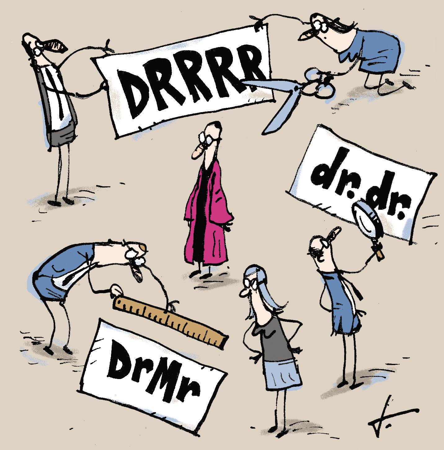 Resno delo pa si je naložilo ministrstvo za izobraževanje, ki v javnih komunikejih trdi, da se ustavni sodnik Klemen Jaklič protizakonito podpisuje. Mož se predstavlja kot Dr.Dr. Jaklič, medtem ko pravijo ministrovi, da bi moral biti po zakonu le dr. Jaklič. Ima torej le en doktorat in se šopiri z dvema? Nak, uspešno je doktoriral tako na Oxfordu kot na Harvardu, torej je dejansko dvojni doktor. Pričakovati je potemtakem, da ga bodo tožili zaradi kršenja zakona. Res, kapitalni delikt, če ob imenu navedeš vse znanstvene nazive, ki si jih pridobil, in ne le enega.