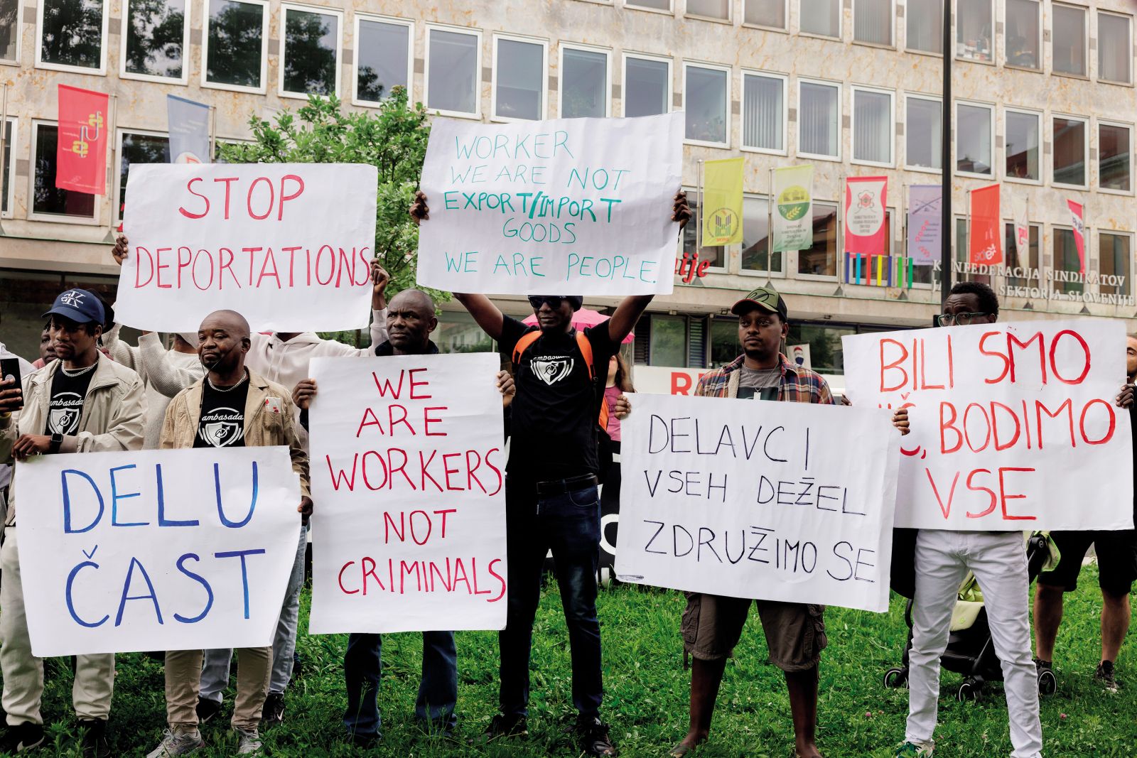 Protestni shod za delavske pravice ob prazniku dela, ki so se ga udeležili tudi prosilci za azil, 1. maj, Ljubljana