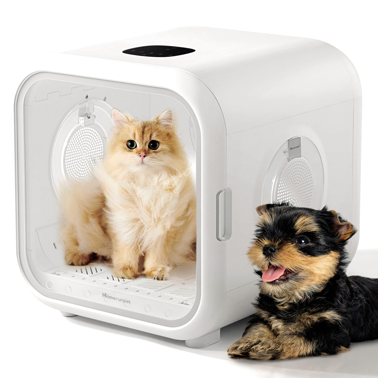 Sušenje hišnih ljubljenčkov je vsaj tako naporno kot njihovo kopanje, a k sreči obstaja naprava, ki prvo počne namesto lastnikov, in ne, to ni sušilec za lase. Gre za čisto pravi sušilnik, v katerega lahko ljudje zaprejo svoje štirinožne družabnike, da jim mokri ne morejo pobegniti. Zadeva je namenjena mačkam do devet kilogramov in manjšim psom, ki tehtajo od pet do osem kilogramov, bržkone pa tudi kakšnemu kuncu. Inteligentni sušilnik za ljubljenčke ima temperaturo nastavljivo od 16 do 40 °C, poseben senzor skrbi za to, da se kosmatinci sušijo enakomerno in se ne pregrevajo, tudi glasnost od 40 do 60 decibelov naj bi bila za žival čisto znosna. Na nadzorni plošči je mogoče izbirati med različnimi načini sušenja, večsmerni zračni tok pa omogoča tudi sušenje težje dostopnih mest, kot so trebuh, tačke in podpazduhe. »Poleg tega bo ta naprava s tremi milijoni negativnih ionov poskrbela za dlako vašega ljubljenčka«, da bo sijoča in puhasta. Zadeva sicer ni prav hitra, saj bodo na primer kratkodlake mačke iz domačega salona izstopile suhe po 30 do 45 minutah, pri dolgodlakih pa bo čas sušenja še enkrat daljši.
