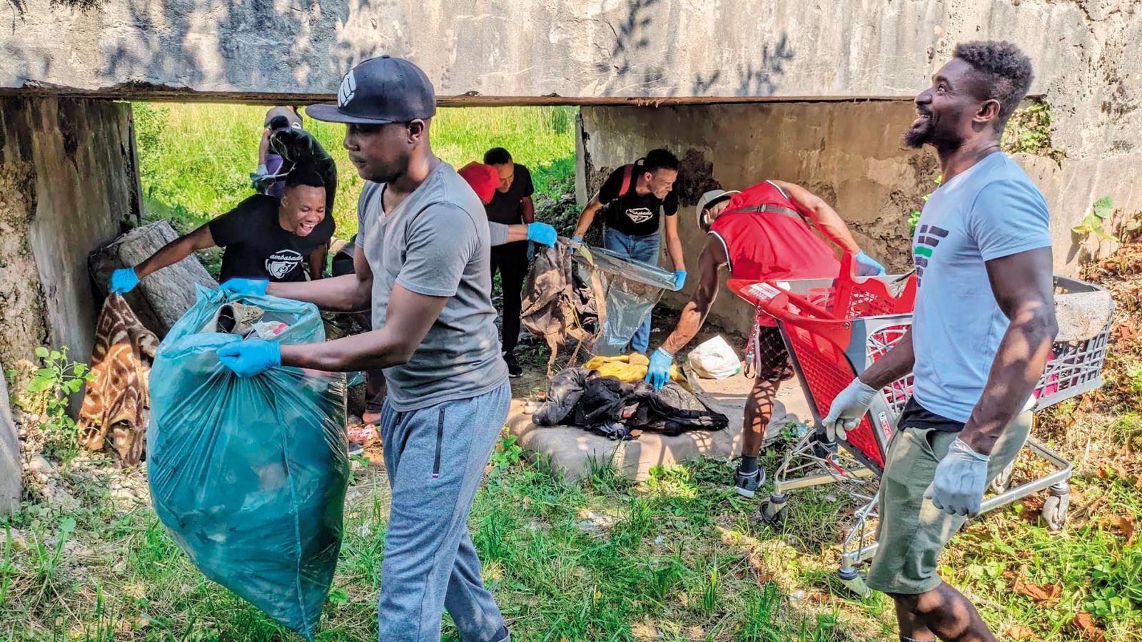 Čistilna akcija prosilcev za azil v sodelovanju z Ambasado Rog na Viču v Ljubljani, ki se je je udeležilo okrog 50 tujcev, ki so zbrali za »cel kombi« smeti, Ljubljana, 8. junij.