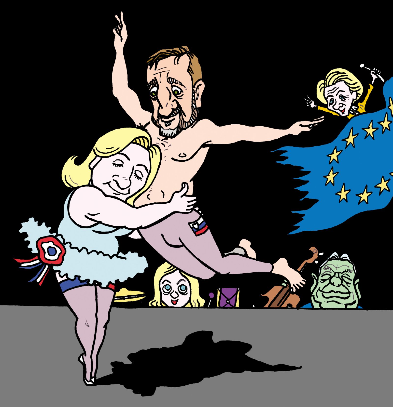 Torej, Boštjančiča ne skrbi skrajno desničarski in neonacistični zmagoviti marš na formalne institucije nacionalnih držav in združene Evrope. Ne skrbi ga nestrpna in ščuvaška protimigrantska politika Le Penove, niti fasciniranost neofašistke Melonijeve nad Mussolinijem, prav tako pa tudi ne ameriški protekcionizem skrajno primitivnega Donalda Trumpa ... In vse to očitno ni problem niti za Gibanje Svoboda?! Nad Boštjančičevo eskapado pa so bili zgroženi koalicijski partnerji v SD. Kolikor upravičeno, toliko hkrati sprenevedavo in sprevrženo. Po eni strani, podobno naklonjeno kot Boštjančič o nacionalnem zboru in Le Penovi, misli in govori Han o SDS in Janši. V čem je razlika, razen da je Janša žepna izdaja prve in da je bolj razumevajoč do neofašistov? Po drugi strani pa je v času, ko je Boštjančič buril duhove z »neavtoriziranim intervjujem« (le kaj bi bilo lahko drugače, če bi bil avtoriziran?) prišla v javnost vest, da je Festival Ljubljana najprej v celoti odpovedal, potem pa napovedal okrnjen nastop gostovanja svetovno znane ruske primabalerine Svetlane Zaharove. Pojasnili so, da je do odpovedi prišlo, ker so »zaprosili za vizume za celotni ansambel. Ministrstvo za zunanje in evropske zadeve vizumov ni izdalo brez obrazložitve.« Sama Zaharova vizuma ne potrebuje, saj ima vizum Republike Italije. Torej, medtem ko Boštjančič prostodušno napoveduje plodno sodelovanje z najbolj zavržnimi političnimi akterji Evrope, so ruski umetniki sankcionirani zaradi politike ruskega režima (!?), med drugim tudi tako, da zunanje ministrstvo Golobove vlade pod vodstvom zunanje ministrice Tanje Fajon zavrne izdajo vizumov. Torej tiste Tanje Fajon, ki se je še pred dobrim mesecem mudila v Izraelu, da bi se priklonila spominu na holokavst. V tistem Izraelu, ki ta čas izvaja genocid v Gazi!