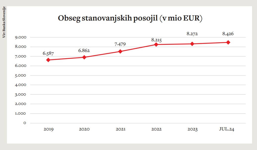 Občutno zmanjšanje števila sklenjenih nepremičninskih poslov, torej prepolovitev glede na sredino leta 2021, ima še druge posledice in tudi vzroke. Čeprav velja, da veliko poslov na našem nepremičninskem trgu zadnja leta ni bilo financiranih s stanovanjskimi posojili oziroma da ta niso bila ključna vsaj pri številnih dragih novogradnjah, Banka Slovenije v omenjenem septembrskem poročilu govori tudi o zmanjšanju prirasta obsega stanovanjskih posojil. Obseg teh se je od začetka leta 2021 do konca leta 2022 povečal s 6,9 milijarde na 8,2 milijarde evrov oziroma, natančneje, za 1353 milijonov evrov neto, od konca leta 2022 do julija letos pa se je povečal neto le za 211 milijonov evrov in zdaj znaša 8,4 milijarde evrov. Razlogi za manjši prirast so seveda povezani s podražitvijo posojil, ki je posledica energetske krize. »Sposobnost posojilojemalcev za odplačevanje dolga se zaradi visoke inflacije in zviševanja obrestnih mer zmanjšuje,« so pri centralni banki ugotavljali še lani spomladi. Za oris: povprečna fiksna obrestna mera za nova stanovanjska posojila, najeta za več kot deset let, je pri naših bankah od marca 2021 do junija 2022 znašala manj kot dva odstotka ( januarja 2022 se je znižala celo na 1,7 odstotka), sredi lanskega leta pa je dosegla že štiri odstotke. Trenutno je nekoliko nižja, 3,7 odstotka.