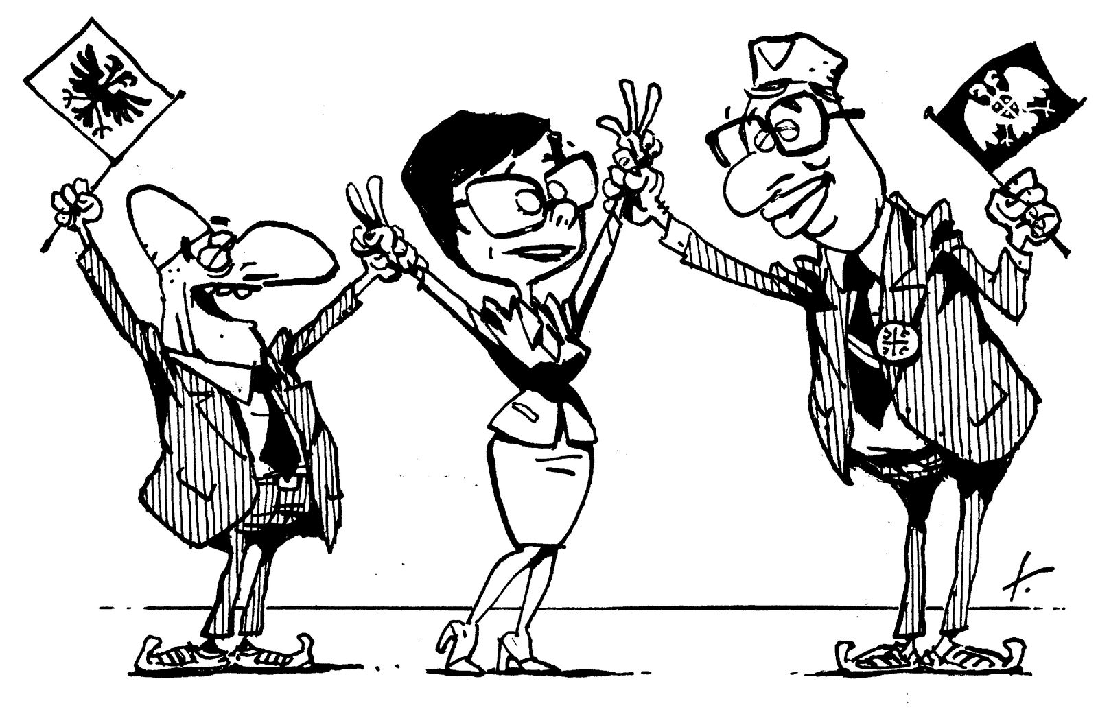 Pred zaslišanjem Kosove Marte v evropskem parlamentu se je pojavila še ena težava: ko je srbski predsednik Vučić izvedel, da je za komisarko za širitev EU predlagana Kosova, je bil ves iz sebe od navdušenja. (»hvala, slovenci, kosova je naša, kosova je srbija!« press)