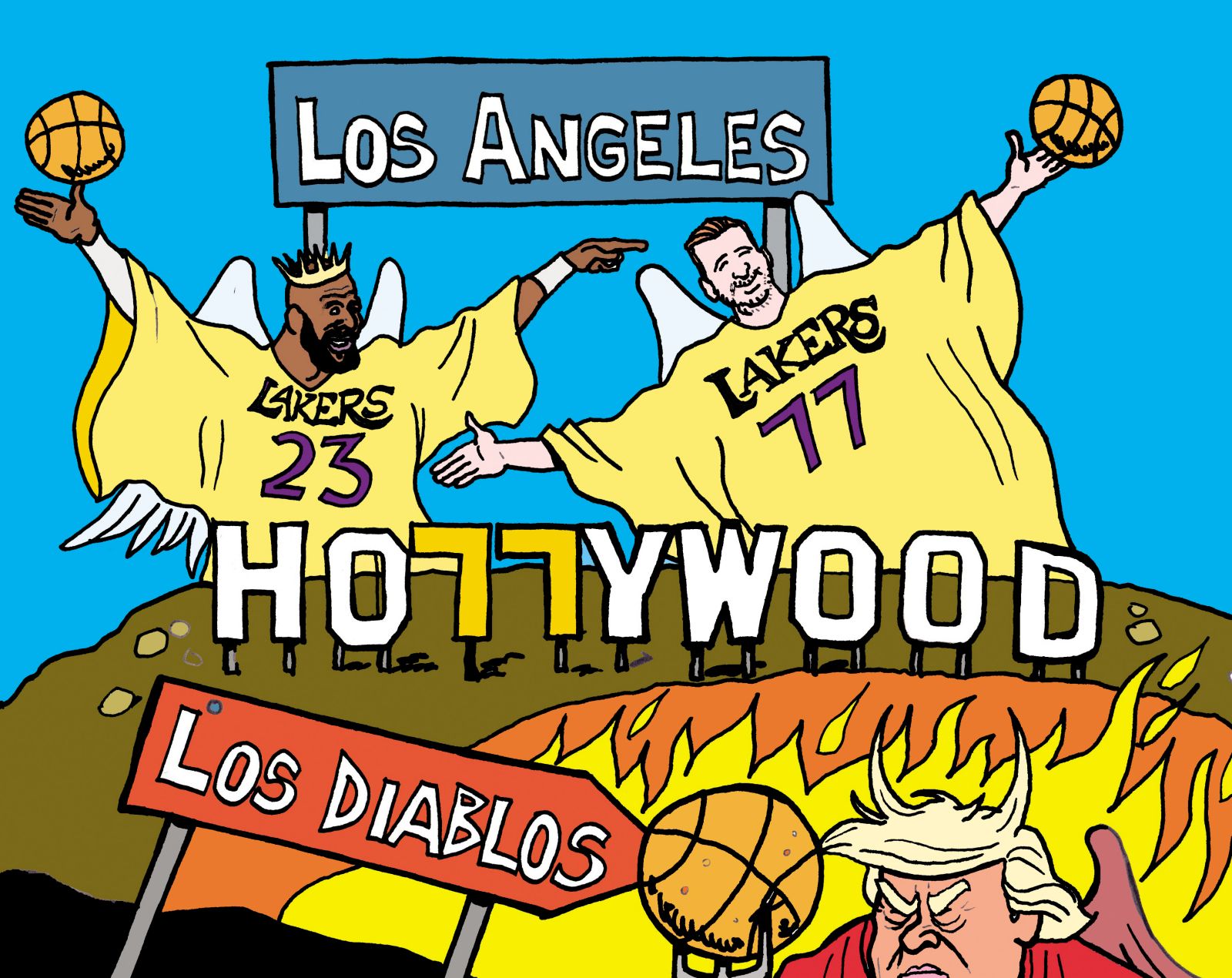 No, kot veliki navdušenci nad košarko moramo vseeno z distanco gledati ne samo na košarkarsko rošado, ampak tudi na nacionalni in planetarni odziv. V Sloveniji je itak vzdušje tako, da sem začuden, da Golob, ki pravi, da je velik častilec Dončića, po tej nori menjavi ni sklical seje razširjenega sveta za nacionalno varnost. Ali pa vsaj poklical svojega novega prijatelja Trumpa, da prekliče prodajo, ki jo je izvedla družina njegove prijateljice in donatorke Miriam Adelson, ki ima v lasti večinski delež franšize. Očitki lastnikov Dallas Maverics Dončiću, da je zavaljen lenuh, ki ruši klubsko kulturo, so res odbiti. Dončić je v pretekli sezoni zasedel drugo mesto po številu odigranih minut na tekmo, s tem da je bil z naskokom najboljši strelec, drugi najboljši podajalec in kot razmeroma nizek zunanji igralec (Point Guard) celo med najboljšimi skakalci lige. A zgodba je ameriška do konca: poraz in ponižanje sta priložnost za triumf. Iz kavbojsko-podeželskega Teksasa se Dončić seli v bleščeči Los Angeles. S kraljevimi častmi ga je sprejel sam King James, kot kličejo velikega Le Brona, ter ga brez rivalstva in zavisti razglasil za svojega naslednika, kraljeviča, prestolonaslednika. Na hollywoodskem griču pa so na znamenitem napisu črki LL virtualno obrnili na glavo, da so asociirale Dončićevo številko dresa (77). Deležen je in bo še neslutenih časti. Amerika pač. A kralj bo princa tudi marsičesa naučil. Denimo tega, zakaj afroameriški igralci ne stojijo mirno in ne polagajo rok na srce, ko pred začetkom tekme intonirajo ameriško himno. Ne nazadnje tudi, zakaj ne bodo, če jim uspe osvojiti play off, odšli v Belo hišo na tradicionalni sprejem prvakov. Za kaj takega bo moral počakati vsaj še štiri leta.