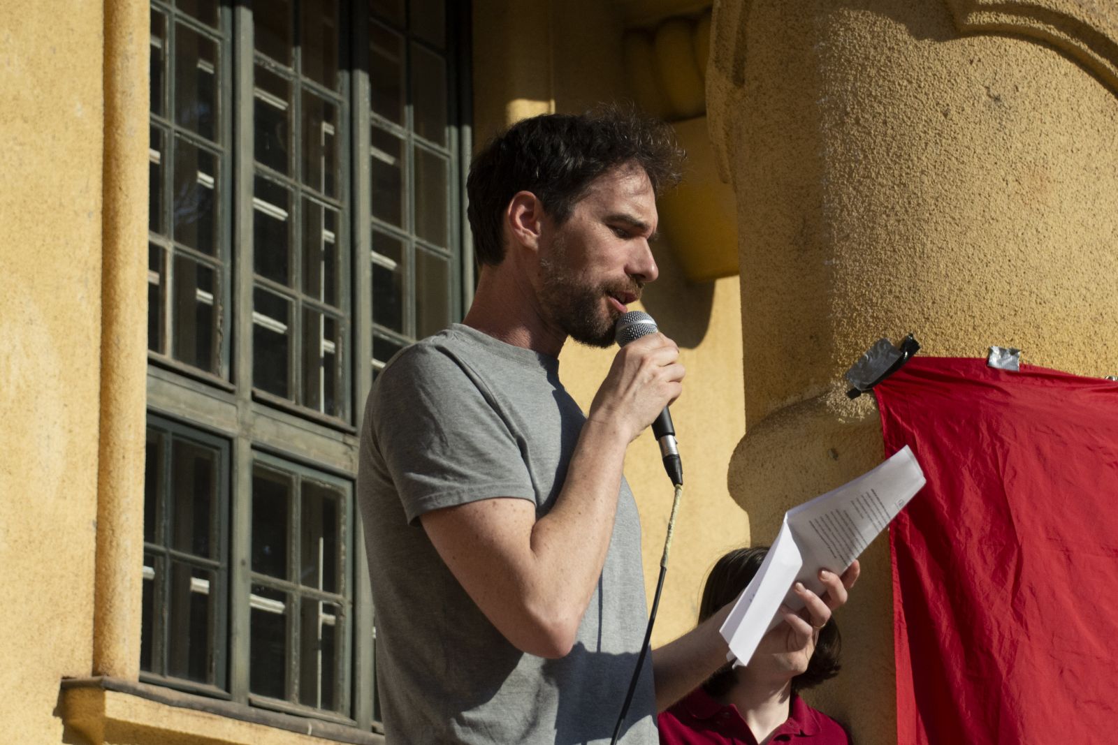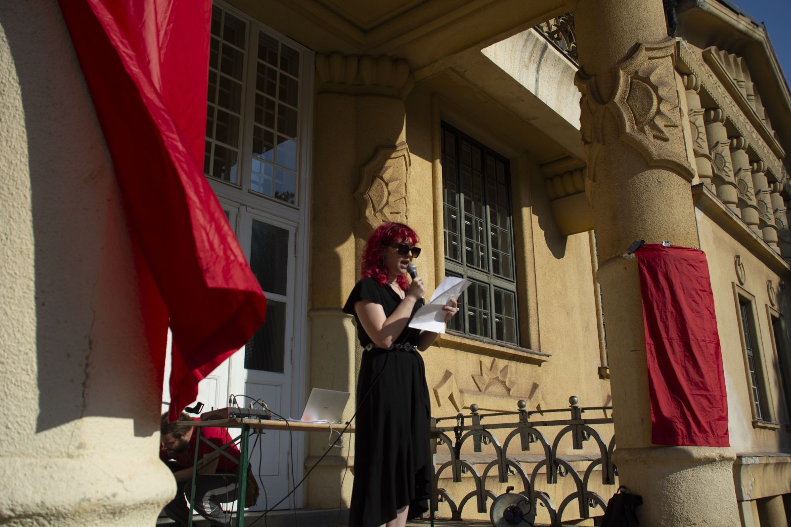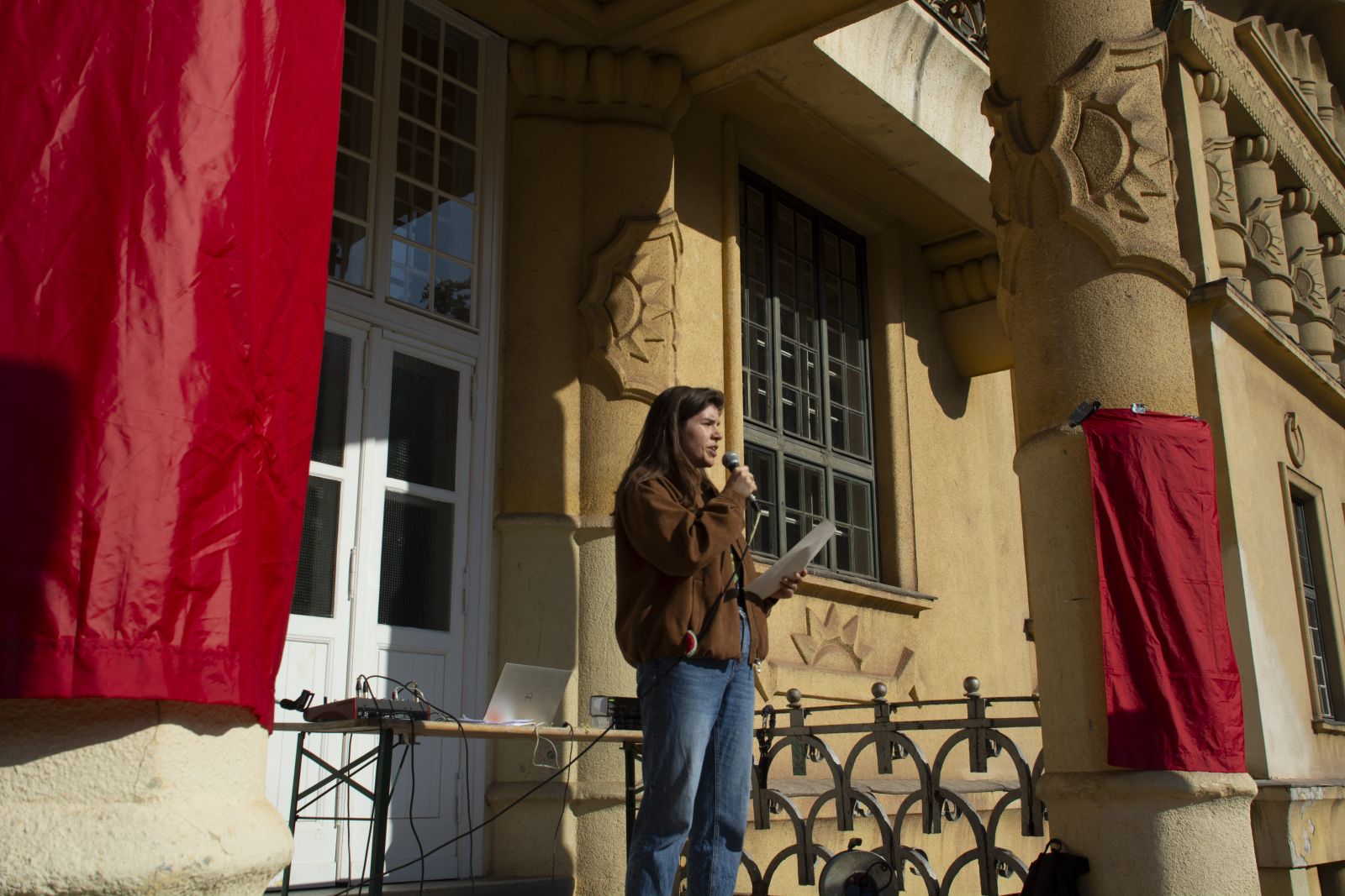 Ustvarjanje transparentov na študentskem pikniku v parku Tabor v Ljubljani