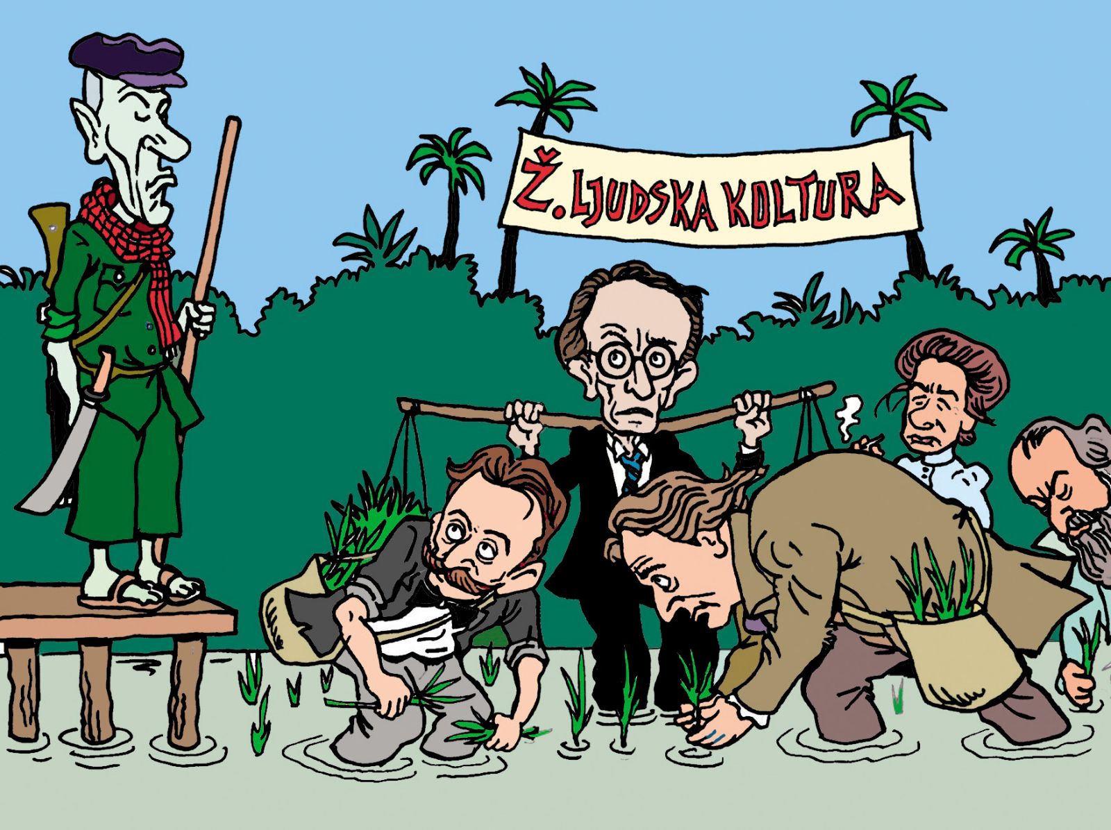 Kulturna revolucija? Hja, davnega leta 1966 je veliki Mao oznanil Odlok šestnajsti maj, ki je pomenil začetek tako imenovane kulturne revolucije. Torej revolucije znotraj revolucije. Ki se je zajedala v drobovje družbe in države. Sledil je pogrom proti umetnosti, znanosti, univerzi, pač vsemu, kar je imelo vzporednice tudi v buržoaznem univerzumu. Rdeči gardisti so tribunale proti subverzivnim in protirevolucionarnim intelektualcem, profesorjem, umetnikom, ki so bili disfemično označeni kot »smrdljiva stara deveta dinastija«, organizirali na ulicah ter obtožnice in sodbe revolucionarnih sodišč razglasili na tako imenovanih zidovih resnice. A kot je nekoč priznal sam Mao, so resnično kulturno revolucijo izpeljali šele Rdeči Kmeri, ki so, ko so leta 1975 zmagovito vkorakali v Phnom Penh, takoj začeli izvajati kar najbolj radikalno in dosledno rekulturacijo družbene stvarnosti. Pač, med kitajsko kulturno revolucijo so se lahko ljudje vsaj do neke mere pritajili in umaknili v svojo intimo in zasebnost. Tako imenovane nove ljudi ali »ljudi 17. aprila« pa so Rdeči Kmeri kar avtomatsko izselili iz dekadentnih mest na podeželje ter jih prisilno vključili v prevzgojne delovne komune na (riževih) poljih smrti. Ne samo nadpovprečno izobrazbo in omiko, celo uporabo očal so šteli kot precej zanesljiv zunanji znak intelektualne in kulturne izrojenosti. Seveda je ob tem nastalo kar nekaj nerodnosti in nedoslednosti. Tako je bilo denimo »bratu številka ena«, kot so klicali voditelja Pol Pota, ki se je med drugim štiri leta izobraževal v Parizu, treba status delavca neoskrunjenega porekla šele podeliti. Zato je, zaradi revolucionarnih zaslug, za nazaj postal delavec na plantaži kavčuka. No, ker imajo tudi Janševi gardisti nenehno zagate s trdim partijskim pedigrejem svojega predsednika, bi lahko storili enako. Za naprej in nazaj bi mu s splošnim odlokom odvzeli partijske korenine. S tem bi ga razbremenili ne le estetske napake zadnjega še živega ortokomunista med evropskimi visokimi politiki, ampak tudi njegove hude osebne travme, ki jo posledično čutimo vsi državljani. Mimogrede, Janša gre v teh dneh desetič zapored na partijske volitve (1993, 1995, 1999, 2001, 2005, 2009, 2013, 2017, 2021 in 2025). Ker je imel samo na prvih protikandidata, je postala situacija nelagodna. Predsednik SDS resda ni papež, ki ga izbirajo izmed potencialno več deset kandidati, a vseeno bi pričakovali, da bi v »stranki čistih rok«, za kakršno se predstavlja SDS, za ohranjanje občutka pluralnosti in izbire, uvrstili na seznam vsaj dva kandidata. Denimo Janeza Janšo in Ivana Janšo. Tveganje za presenečenje bi bilo sorazmerno majhno. Prepričan sem, da bi večina gorečih volivcev volila Janeza.