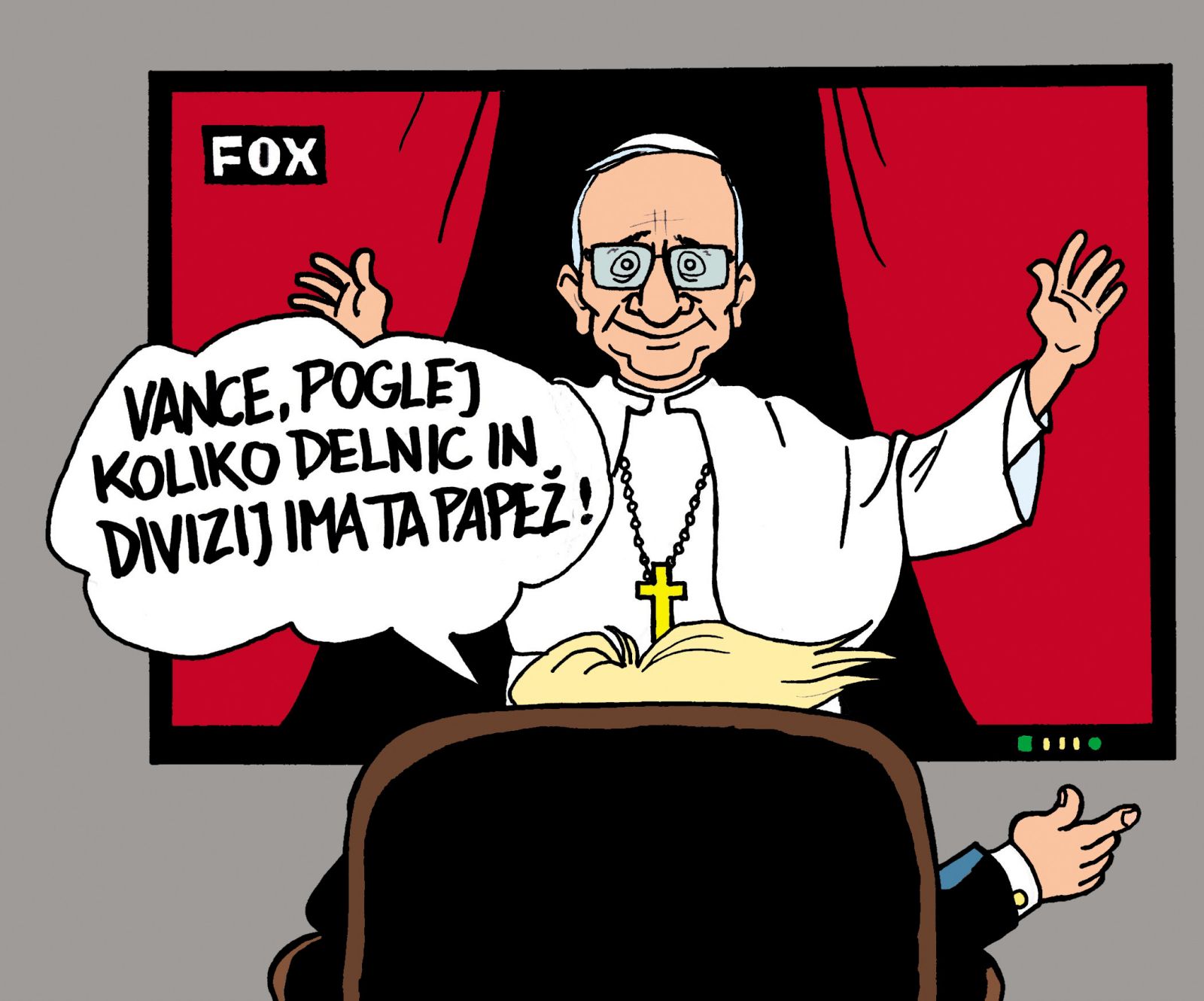 Kaj pa Leon XIV.? Prvi vtis sicer je, da bo ameriški papež manj »rdeč« od Frančiška, še vedno pa na pozicijah socialne pravičnosti in prizadevanj za mir. A če bo hotel obstati v središču dogajanja in vplivanja, bo moral zagristi tudi v ameriško tabu temo – izraelski genocid v Gazi. Vse to ga bo neizogibno soočilo s Trumpovo administracijo. Še pred izvolitvijo je sicer sramežljivo izrekel kritične pripombe k podpredsedniku Vanceu. Tistega Vancea, ki je bil v središču intervencije ameriške ambasade v odnosu do referenduma v Sloveniji. Kar sicer ni precedens, ker to nenehno počnejo, vsekakor pa je to diplomatsko poniglav eksces. In niso toliko problem arogantni ameriški diplomati kot slab oziroma nikakršen odziv vladne politike. Zunanja ministrica, denimo, si sploh ni upala, hotela, smela ... odzvati.