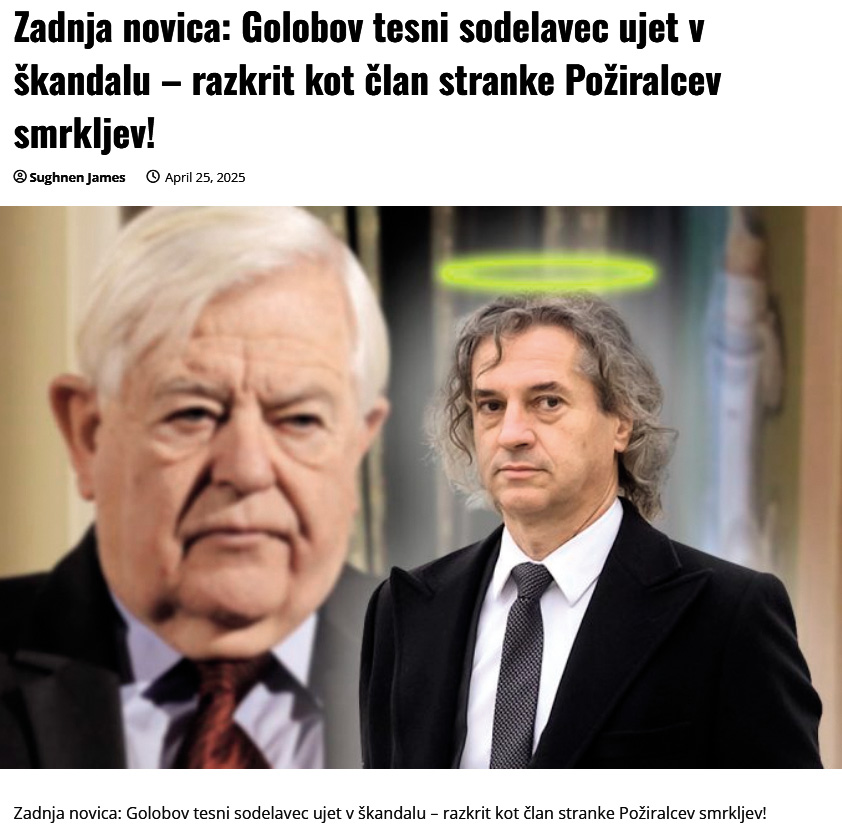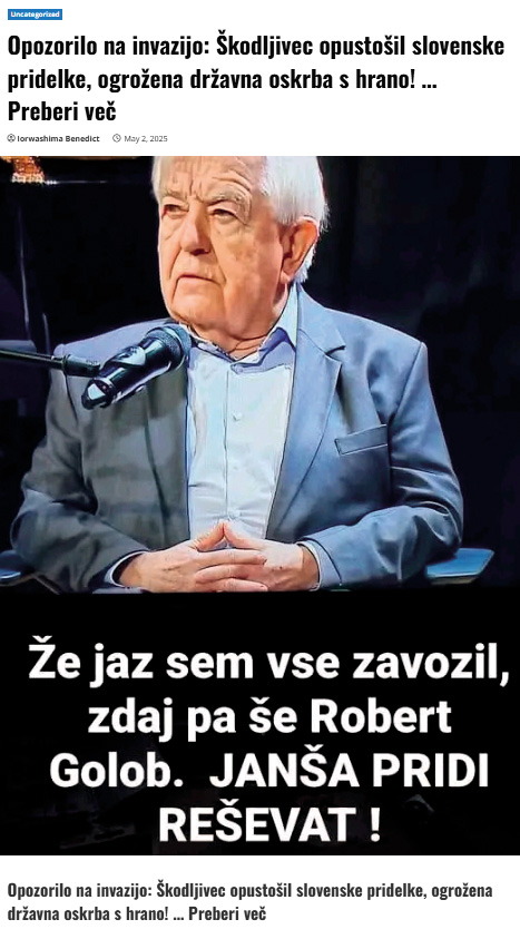 Primeri lažnih spletnih strani, večinoma registriranih v Afriki, kjer avtorji s pomočjo umetne inteligence objavljajo izmišljene oziroma lažne, a »klikabilne novice« iz Slovenije. Umetni algoritmi so pri tem odkrili recept ali pot, ki v Sloveniji najbolj deluje. Dezinformacije morajo biti kritične do levih ali liberalnih politikov in afirmativne do skrajno desnih politikov. Tako je največ klikov in delitev. Lastniki tako služijo z reklamami.