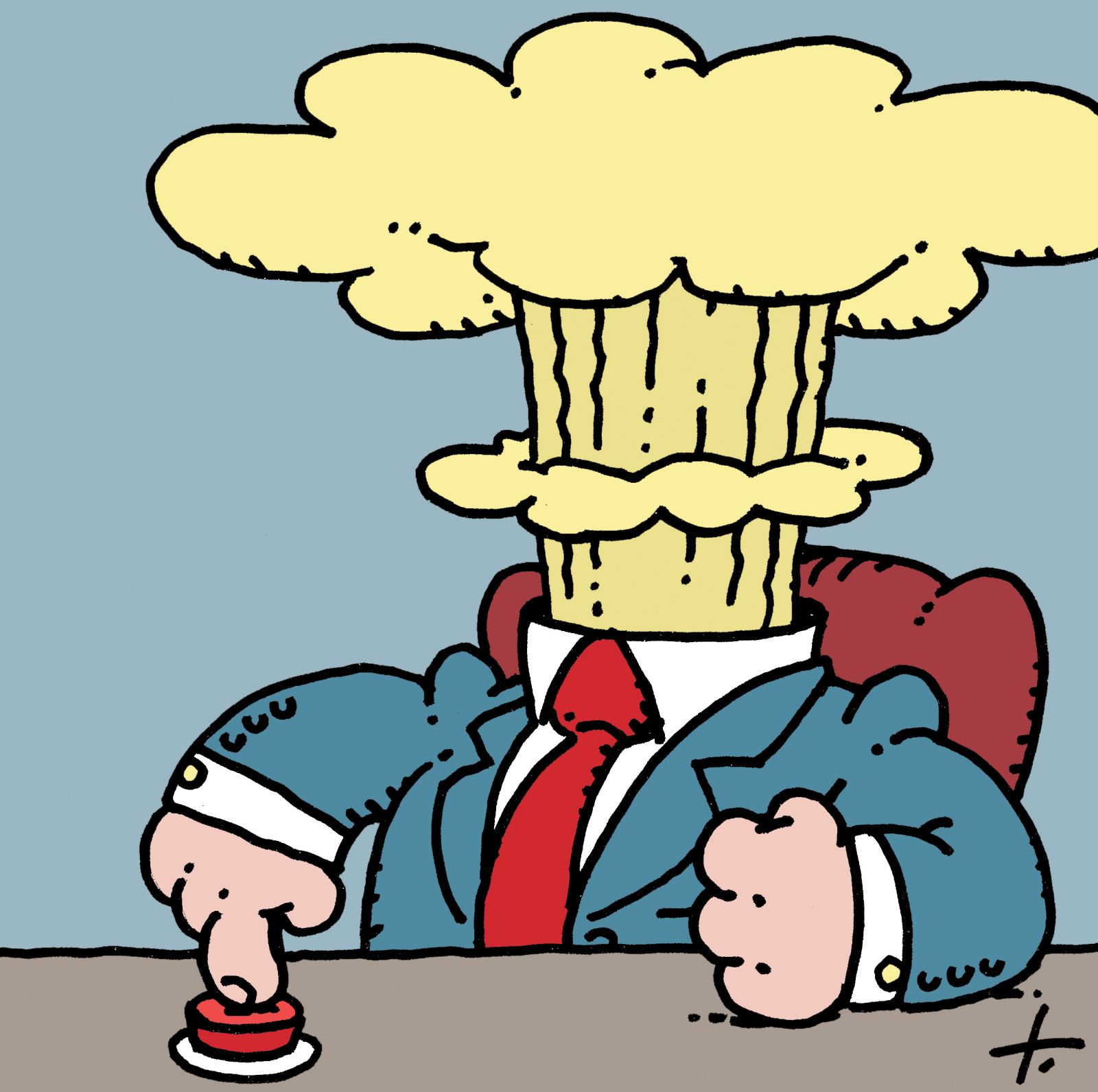 Take vojne ne bo zavestno sprožila nobena velika jedrska sila, saj ve, da bo potem uničena tudi sama. Ne varuje nas razum, ampak strah. Velika jedrska vojna lahko nastane le po spletu nesrečnih naključij, ko bi odpovedal nekdo v verigi ukazov, potrebnih, da se jedrsko orožje pošlje v zrak. Ta nekdo je lahko celo umetna inteligenca ali blaznost v glavi kakega človeka, tudi tistih treh, ki imajo največ jedrskih konic in nobenega nadzora nad seboj. Saj si ni težko predstavljati prsta na rdečem gumbu in norega krohota.