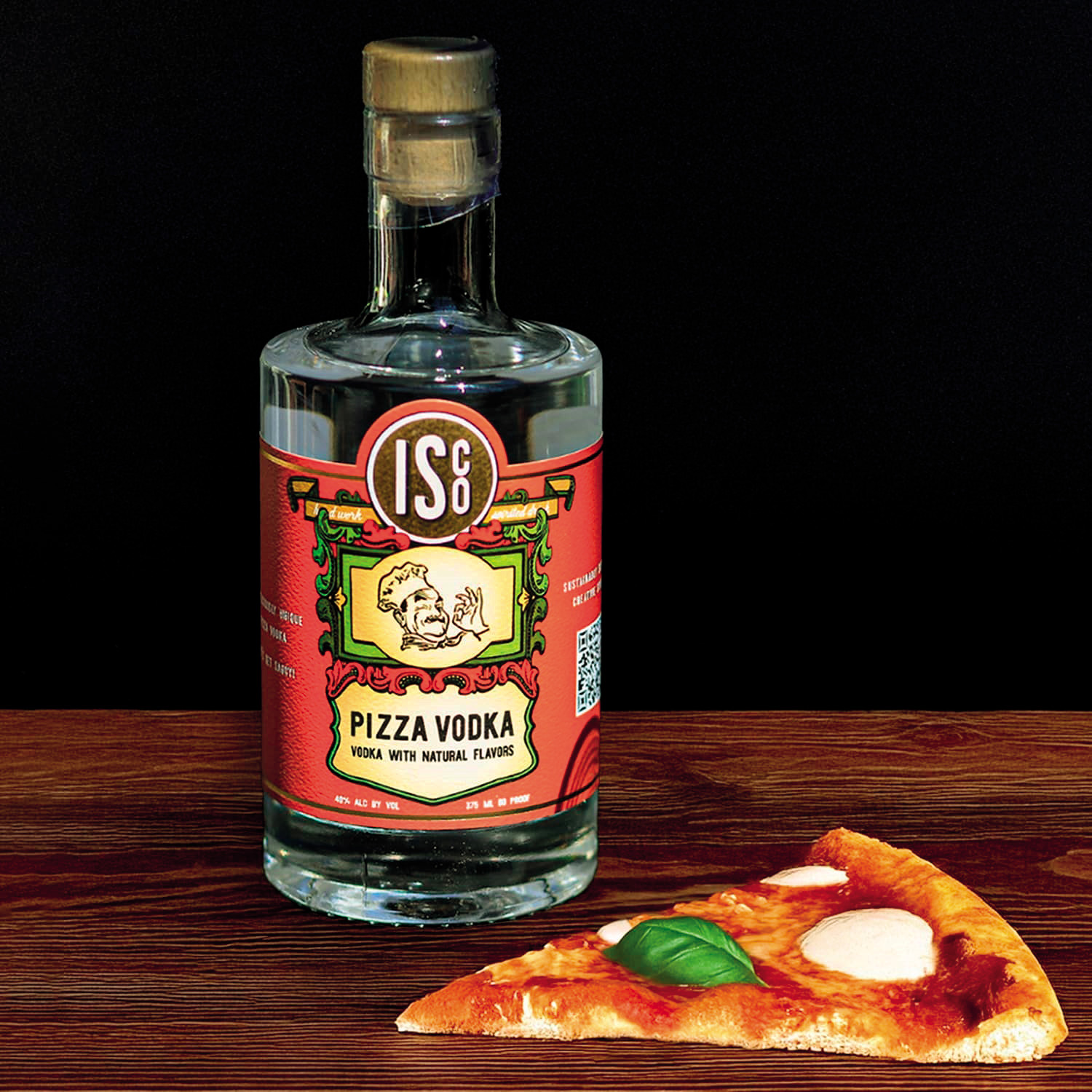 Podjetje ISCO Spirits iz San Francisca slovi po izvirnih žganicah, saj izdeluje na primer vodko z ostrigami, letos pa je v rodnem kraju zlato medaljo na svetovnem tekmovanju žganih pijač osvojila njihova pica vodka. Varijo jo iz ekološko pridelane pšenice, paradižnika in mocarele ter začimb, kot sta origano in bazilika, ozaljšajo pa jo s pridihom česna. Priporočajo jo tudi v koktajlu bloody mary, med predlogi za različne načine uživanja pijače so enega poimenovali italijanski žrebec; pri njem pizza vodko nalijemo v štamprle, na omočeno roko potresemo nariban parmezan, nato pa sir poližemo, na dušek spijemo žganico in čez ruknemo en feferon. Informacij o tem, ali lahko vodko uživajo tudi glutensko in laktozno intolerantni, nismo zasledili. Enako zanimiva, a manj izvirna od eksotičnega okusa vodke je maskota na etiketi steklenice, ki verjetno predstavlja italijanskega kuharja in je videti kot plagiat ilustracije kuharskega mojstra, ki nam je od šestdesetih do devetdesetih let prejšnjega stoletja na embalaži priporočal, naj jedem dodamo žličico vegete.