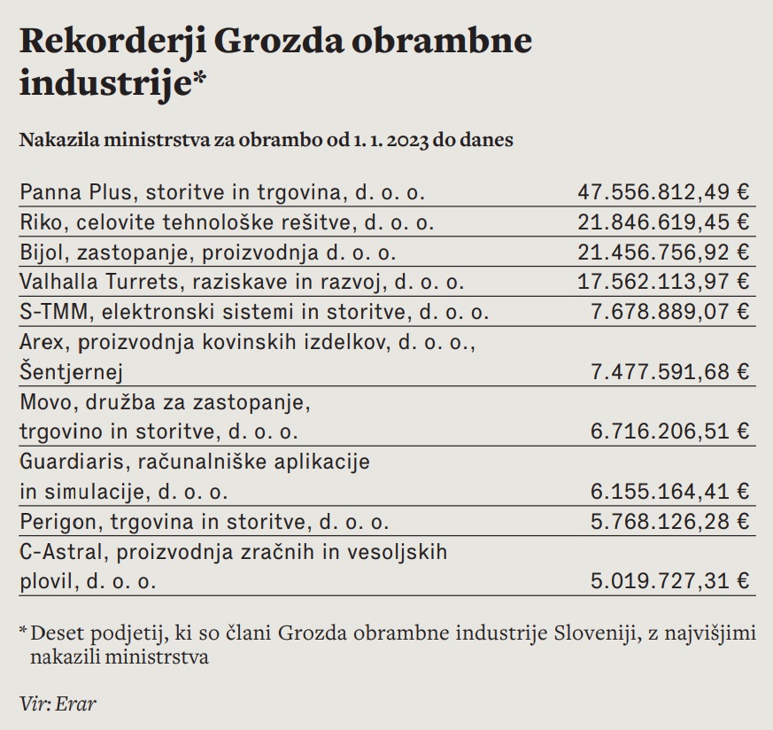 V strategiji ni opredeljeno, kaj je »obrambna industrija« in kaj bomo pospeševali prednostno. Gre za širok pojem in očitni evfemizem, torej olepšavo industrije, ki vključuje tudi proizvode za uničevanje, pohabljanje in ubijanje – besed, ki jih ne omenja nobena strategija. V »obrambno industrijo« spada na primer tudi izraelsko državno podjetje Rafael, ki je 7. julija na omrežju Elona Muska X objavilo reklamo za svoj sistem brezpilotnih letalnikov Spike Firefly. Del reklame je bil 15-sekundni posnetek iz Gaze, kjer dron zasleduje bežečo osebo v stavbo, tam pa sledi eksplozija. Ob objavi, kjer se Rafael hvali s »preizkušeno natančnostjo«, je posebna poročevalka Združenih narodov za Palestino Francesca Albanese poudarila zavržnost, da orožarji posnetke ubijanja Palestincev uporabljajo kot marketinško orodje: »Nekaznovanost je tista, ki spodbuja takšno izprijenost.« Kot obrambna industrija se pri nas samoopredeljuje 124 podjetij, tudi Boscarol, Dewesoft, SIJ, Talum in Riko ter ljubljanska fakulteta za strojništvo. Skupaj torej 125 članov Grozda obrambne industrije Slovenije se uvršča v sedem skupin: orožje in strelivo, osebna zaščitna oprema, informacijska tehnologija in kibernetska varnost, optika, elektronika in komunikacije, pa raziskave in razvoj, vozila, plovila in zrakoplovi ter trgovina in podpora poslovanju. Omenjeni Rafael bi se v tej razdelitvi verjetno samouvrstil med »vozila, plovila in zrakoplovi«.